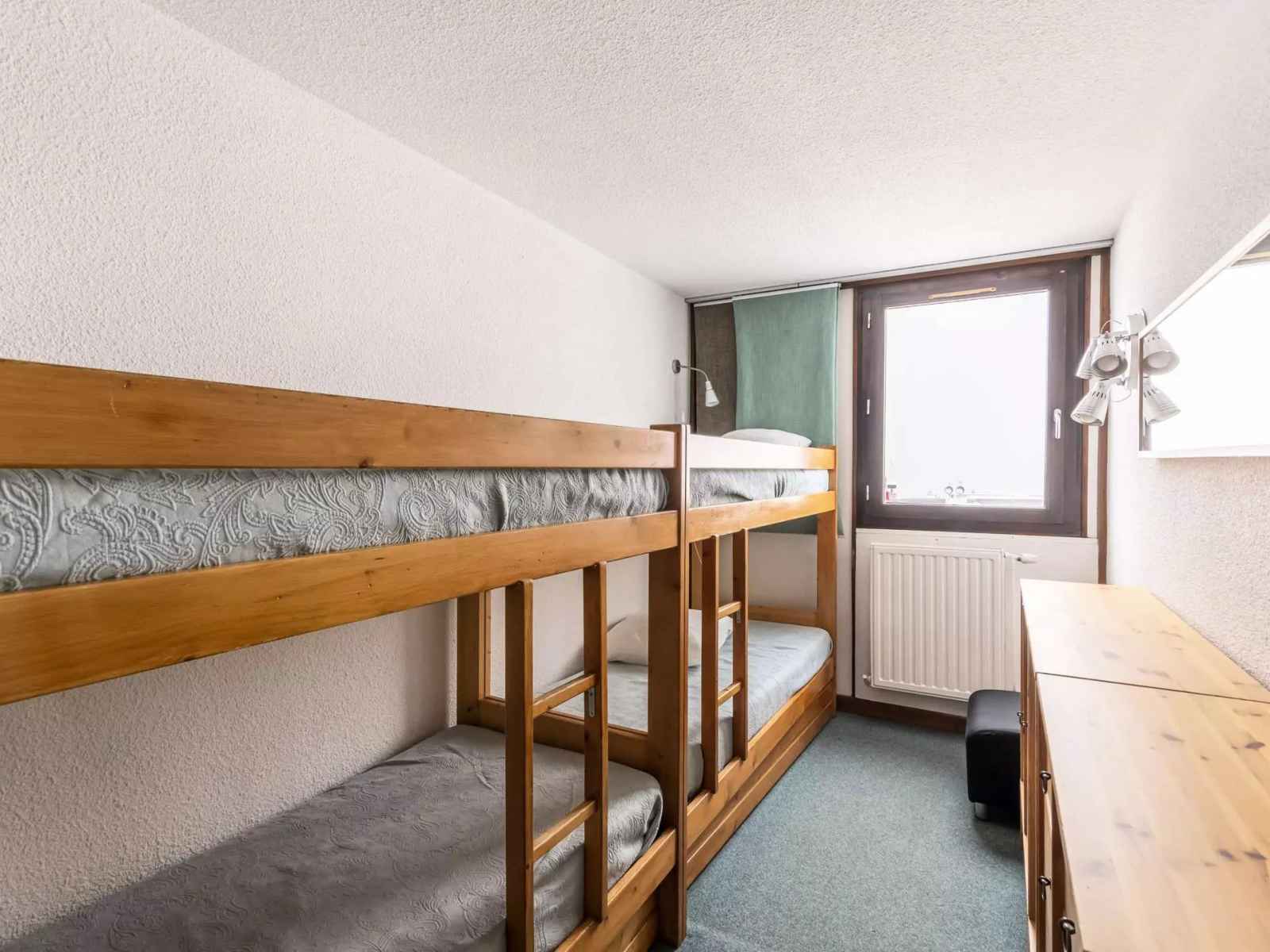 lave-vaisselle, four, four micro-ondes - Séjour : 1 canapé-lit peigne 2 pers, TV - Chambre 1 : 2 lits 1 pers. Chambre 2 : 2 lits superposés et 1 lit 1 pers. Salle de bains : baignoire. WC séparés. Literie : couvertures - Appartement non fumeur, animaux non admis. En option et en supplément: Ménage de fin de séjour, draps, serviettes, forfaits ski.