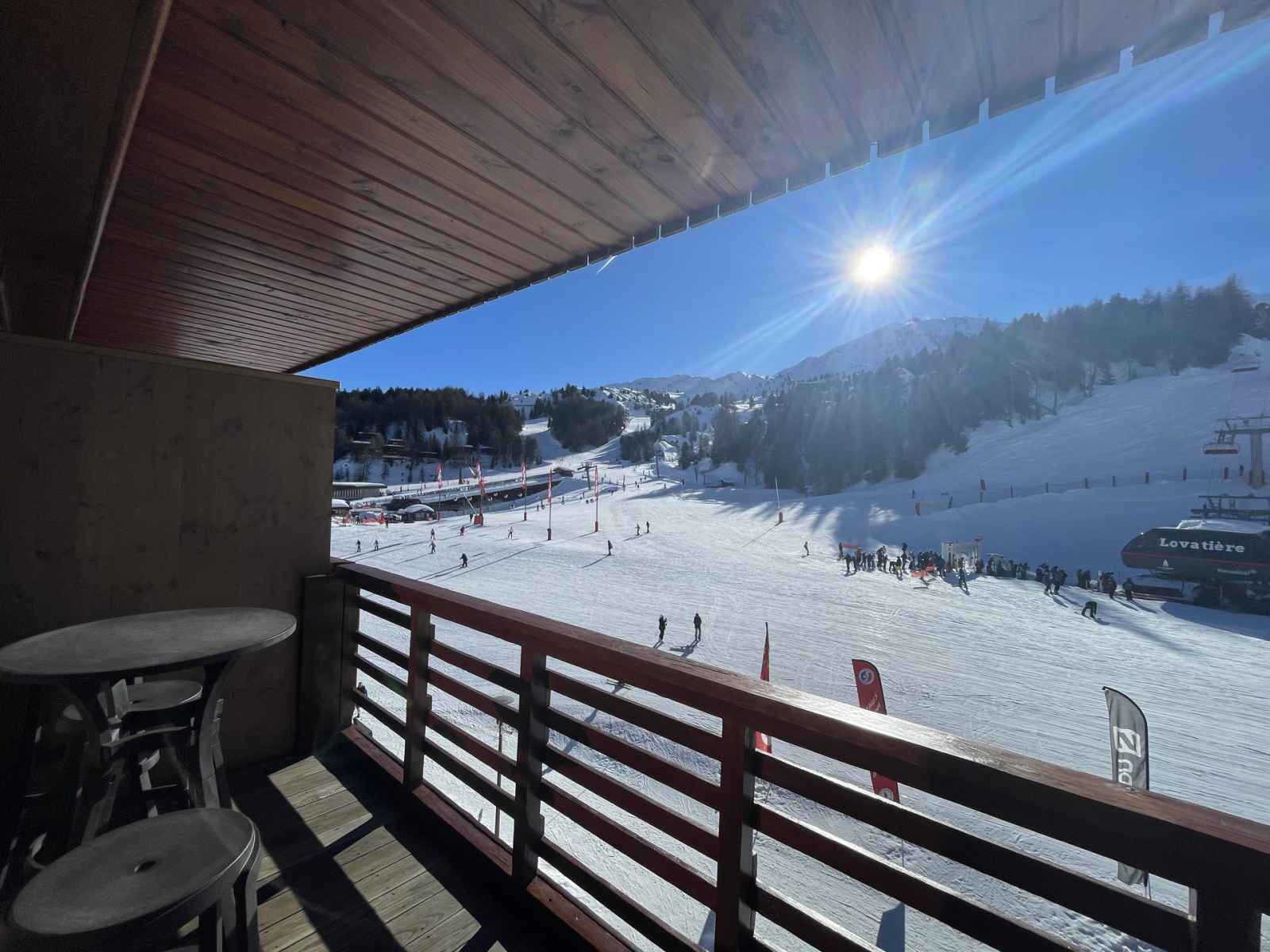 situé dans la résidence nanda devi ii à plagne centre, appartement tout équipé avec vue sur les pistes et sur le front de neige.