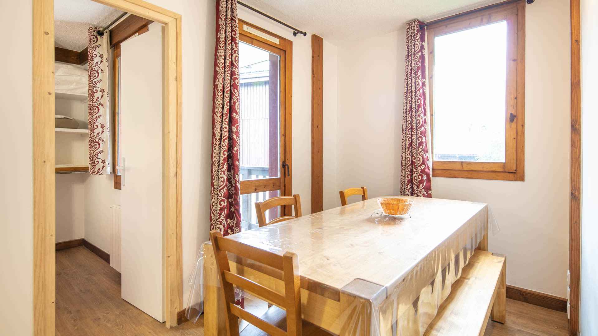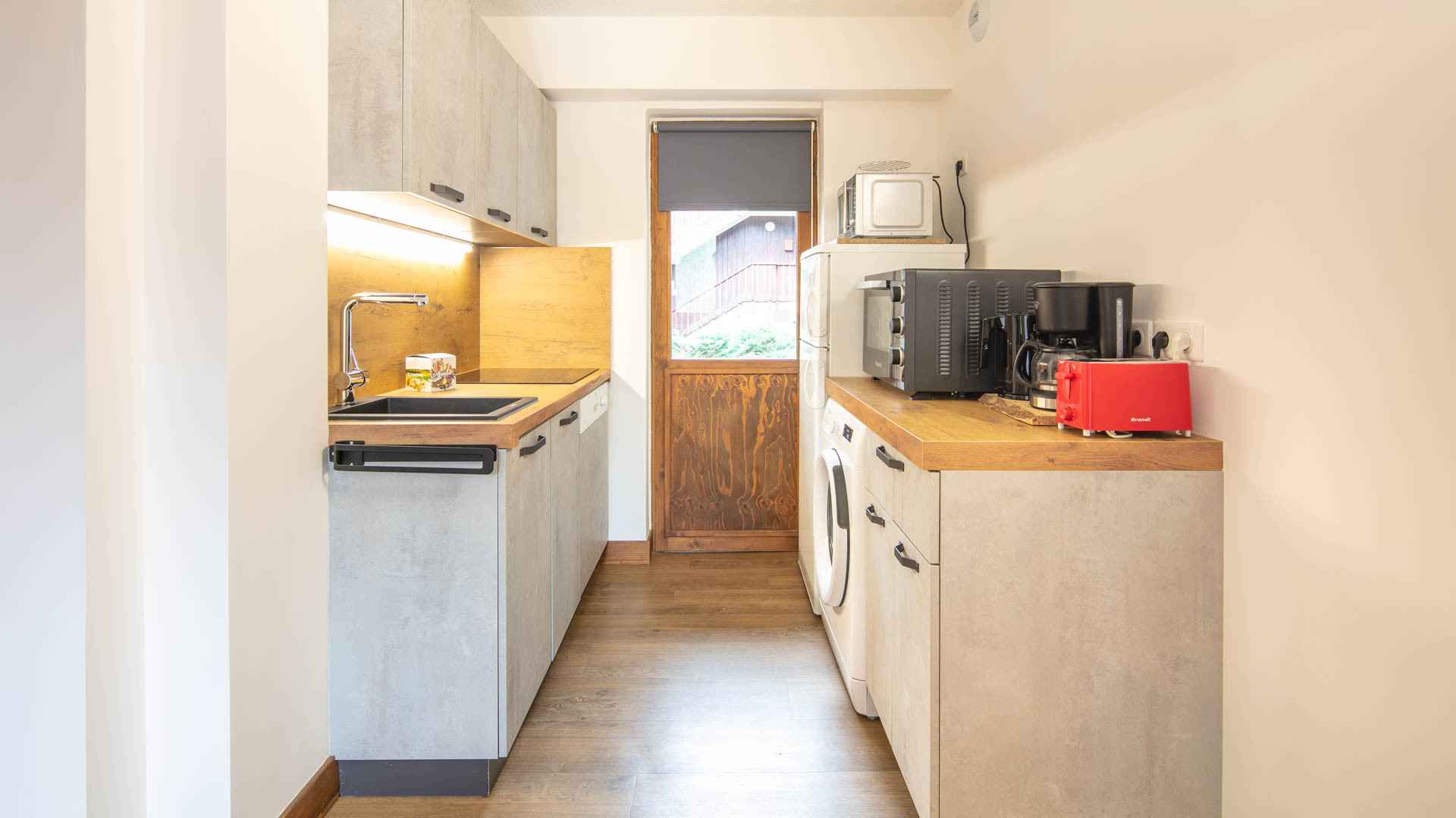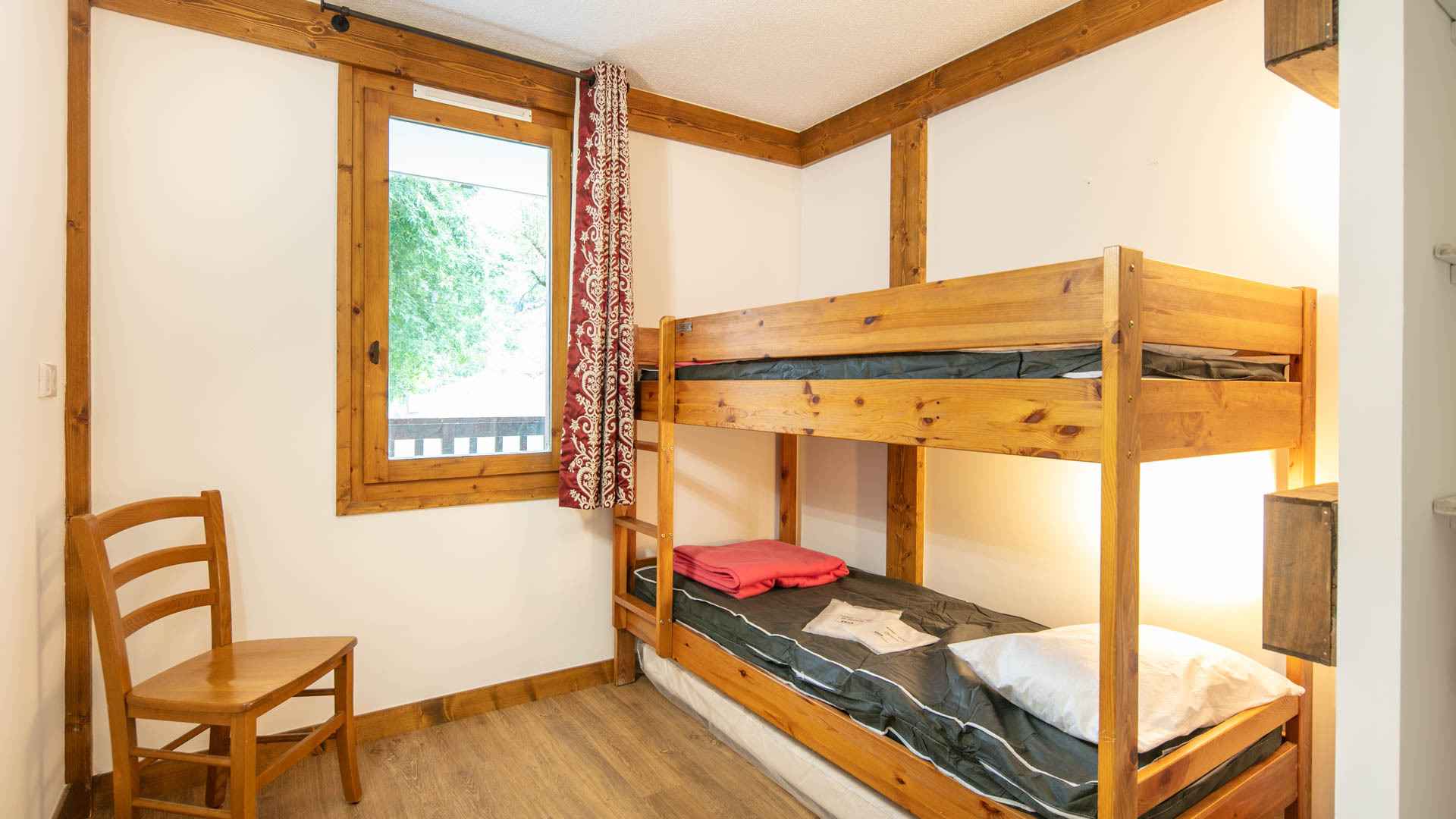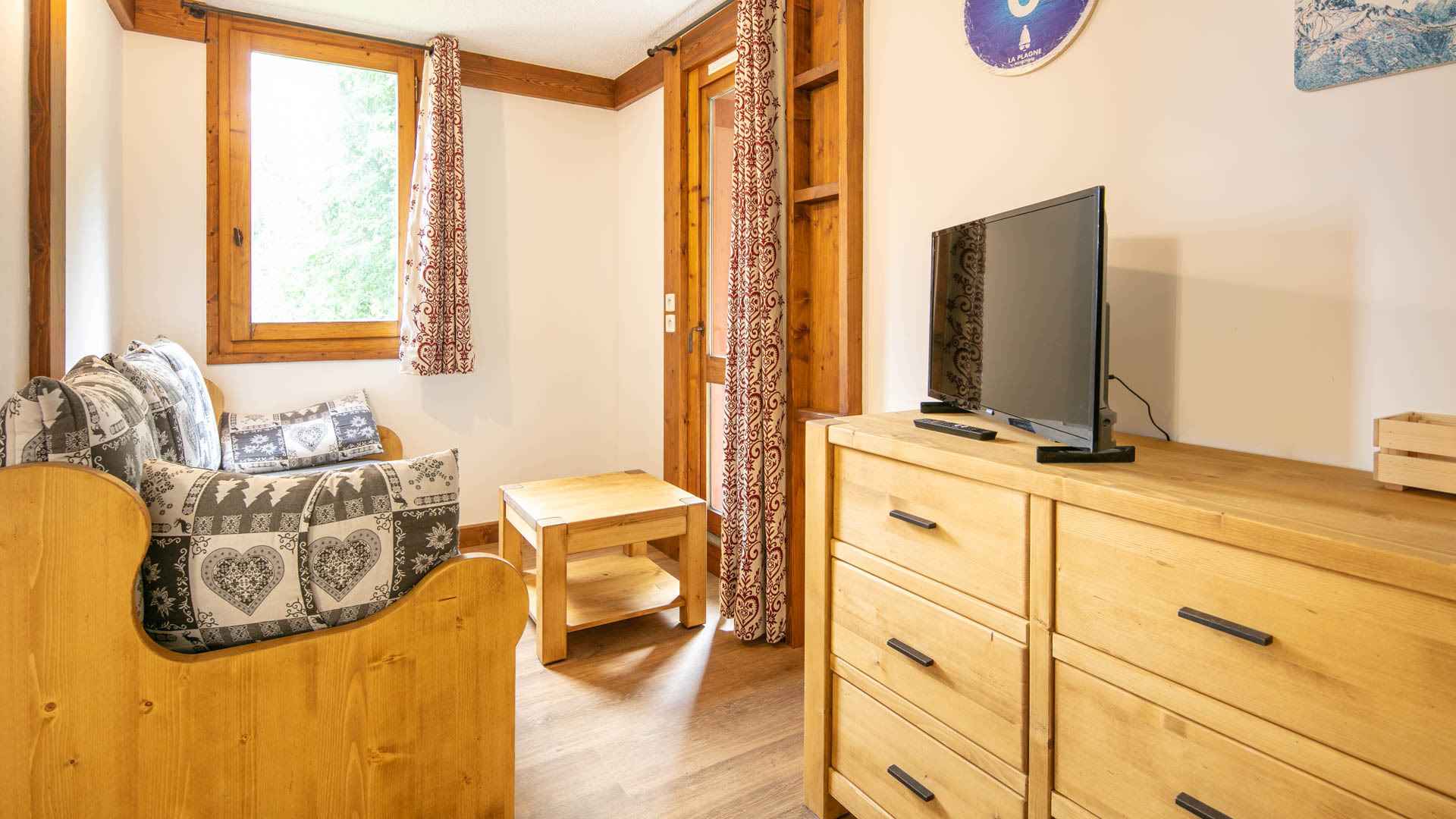 équipée (de plaques vitrocéramiques 3 feux, four, micro-ondes, lave-vaisselle, lave-linge, cafetière, grille-pain, bouilloire, réfrigérateur avec partie congélateur). Il est également composé d'une salle de bain avec baignoire, d'un wc séparé, d'une chambre avec un lit superposé (interdit aux enfants de moins de 6 ans) et un lit gigogne. Le coin salon est équipé d'un canapé lit gigogne. Enfin, il dispose d'une chambre parentale avec un lit double en 140cm. Une salle de bain privative et un WC séparé accompagnent cette chambre. Pour votre confort vous disposez d'une télévision au salon et d'une télévision dans la chambre. Casiers à skis à votre disposition. Classement 3 étoiles / 3 cristaux Paradiski obtenu en Décembre 2021. Ses atouts : - Appartement entièrement rénové - Belle exposition vue sur la vallée et la forêt - Lit bébé + chaise bébé à disposition Linge et ménage de fin de séjour en suppléments. Appartement non fumeur. Animaux interdits.