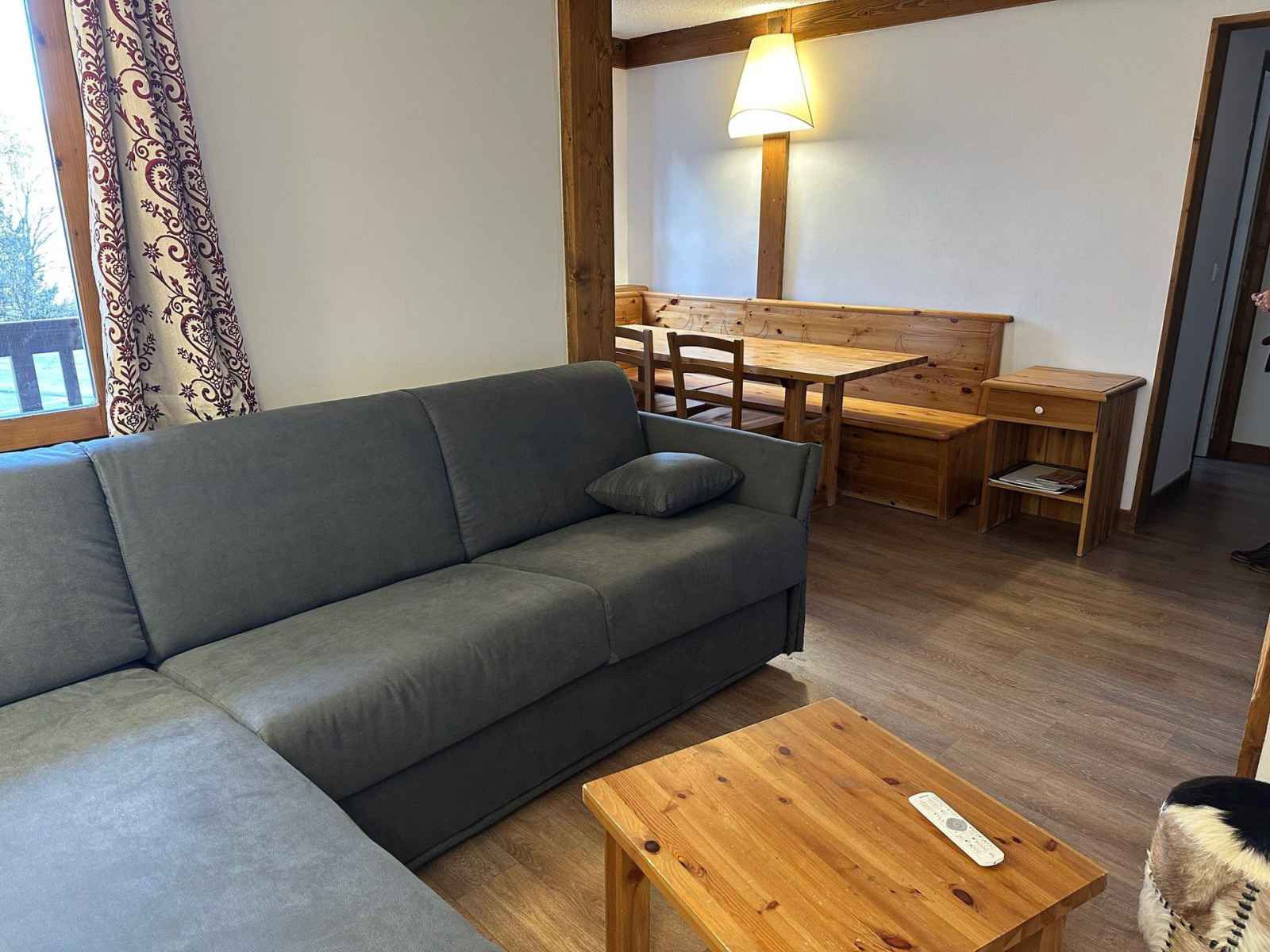 grille-pain, bouilloire, réfrigérateur avec partie congélateur), de deux salles de bains baignoires, de deux wc séparés. Vous disposez d'une chambre avec deux lits simples rapprochés permettant un couchage en 160cm et d'une chambre avec un ensemble lits superposés (interdit aux enfants de moins de 6 ans). Le coin salon est équipé d'un canapé lit en 140cm pour deux personnes. Pour votre confort vous disposez d'une télévision au salon et d'une télévision dans la chambre. Casiers à skis à votre disposition. Ses atouts : - Appartement entièrement rénové - Belle exposition vue sur la vallée et la forêt - Couettes Linge et ménage de fin de séjour en suppléments. Appartement non fumeur. Animaux interdits.