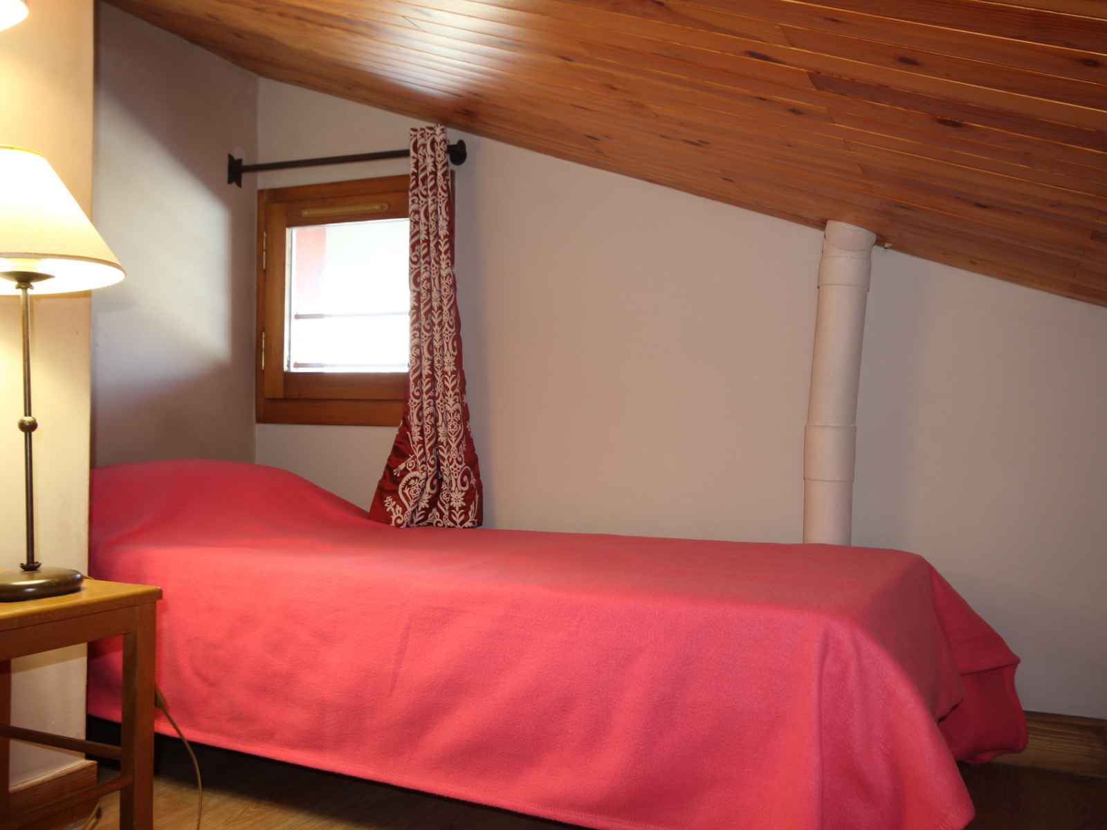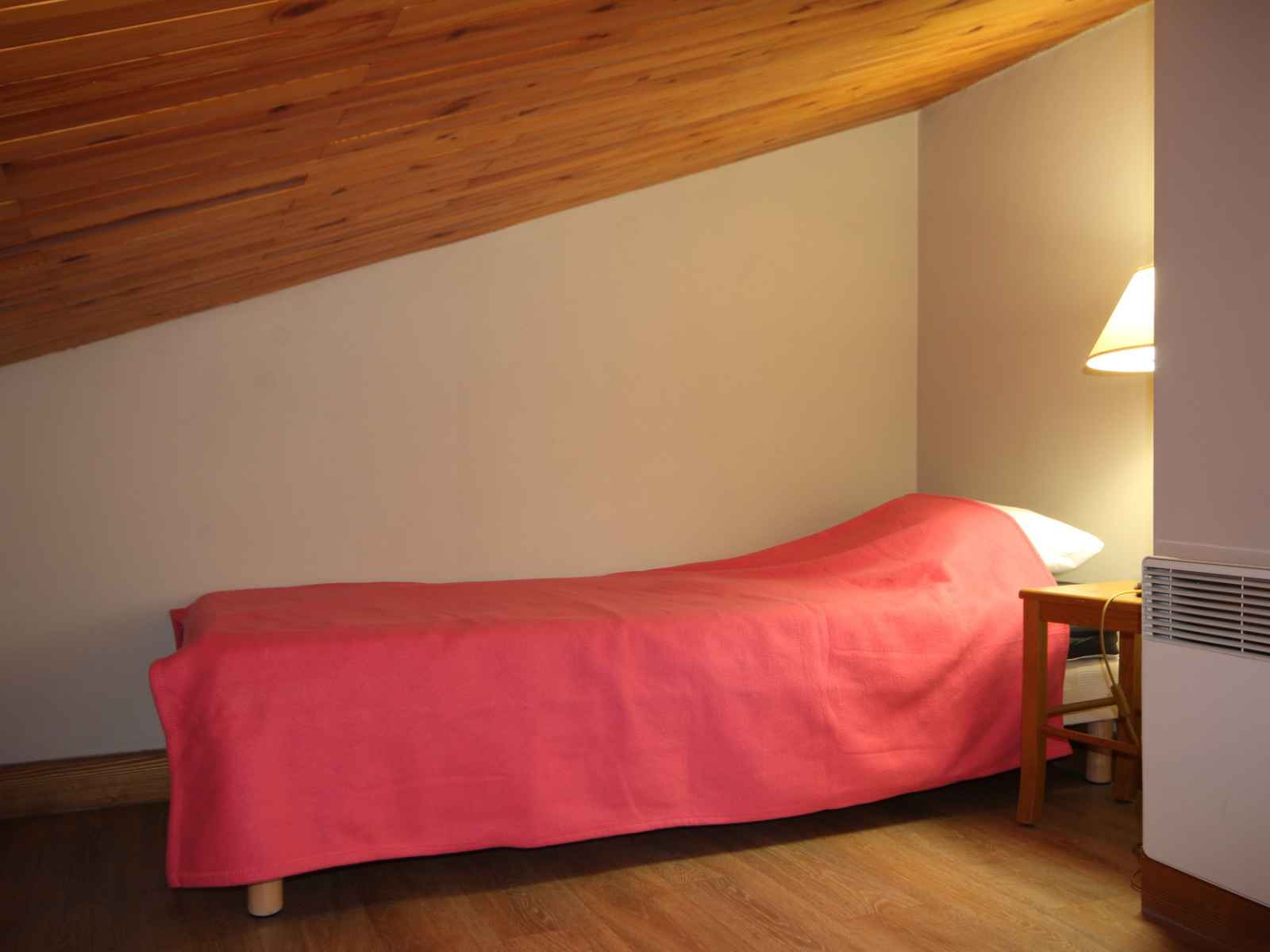 fermée, équipée de plaques vitrocéramiques, four micro-ondes, lave-vaisselle, cafetière, grille-pain, bouilloire, réfrigérateur. D'une salle de bain baignoire et wc séparé. Vous disposez d'une chambre sous pente avec deux lits simples rapprochés permettant un couchage en 160cm et d'une chambre avec deux lits simples également sous pente. Le coin salon est équipé d'un canapé d'angle non convertible. Pour votre confort vous disposez d'une télévision au salon et d'une télévision dans la chambre parentale. Casier à skis à votre disposition. Ses atouts : - Appartement bien rénové - Magnifique vue sur le Mont Blanc - Couettes Linge et ménage de fin de séjour en suppléments. Appartement non fumeur. Animaux interdits.