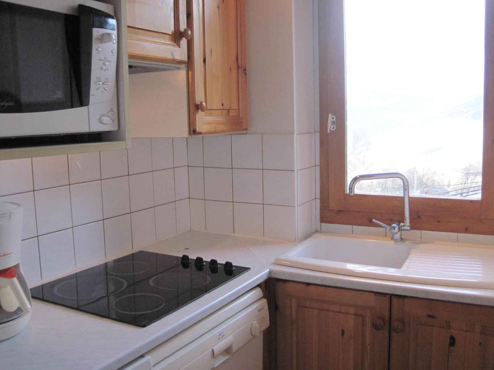 cet appartement au deuxième étage à proximité des pistes se compose d'une kitchenette équipée (de plaques vitrocéramiques,