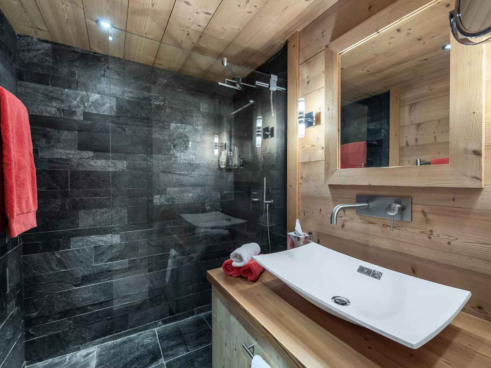 - Salle de douche indépendante : douche, vasque, sèche-serviette
