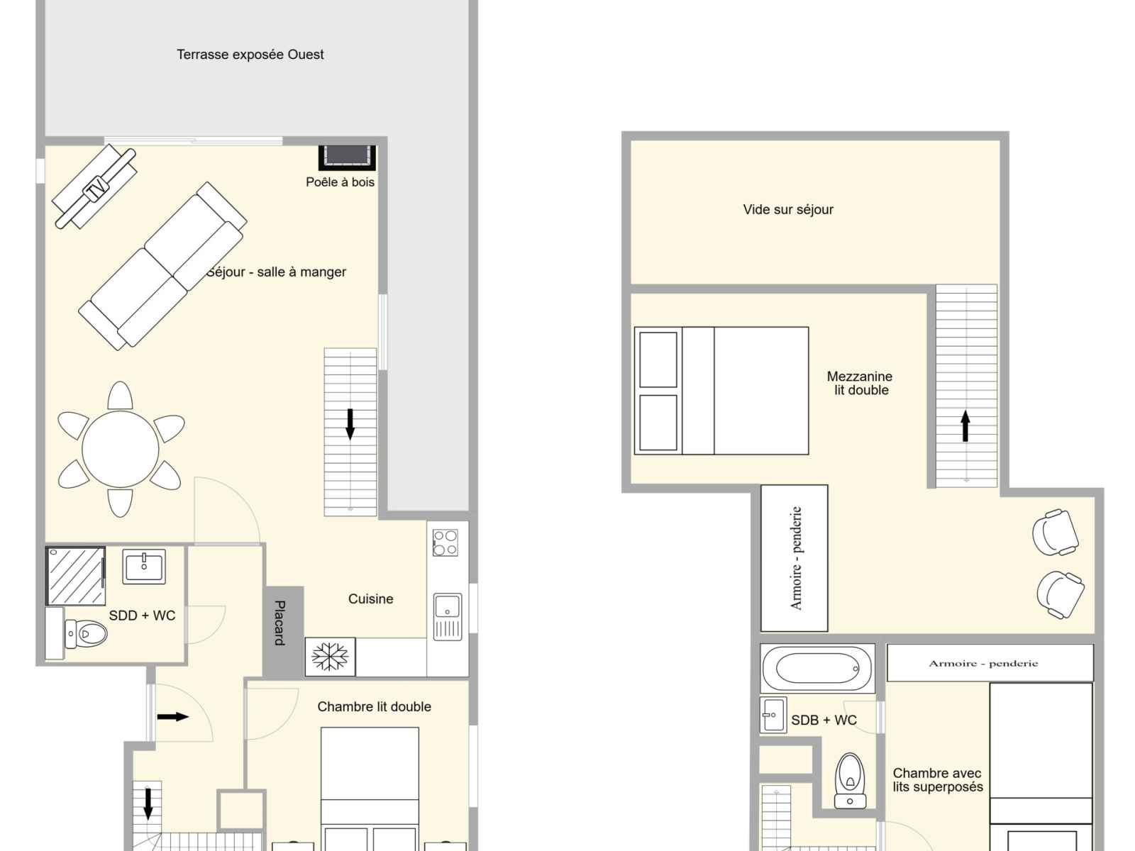 3 pièces duplex avec mezzanine, 6 personnes, 61m², terrasse ouest