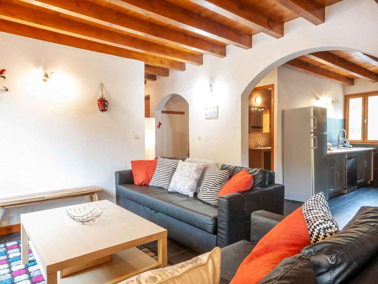 canapé-lit, cuisine ouverte, accès balcon