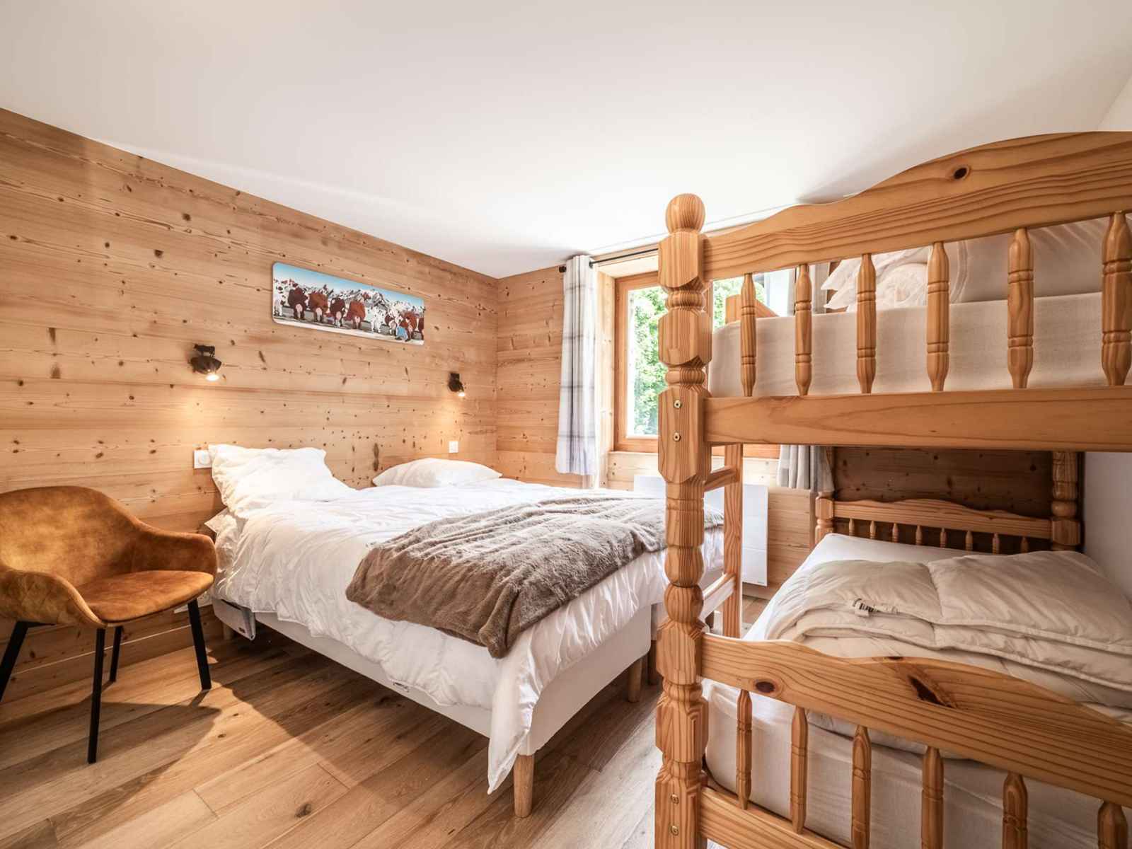 - une seconde chambre avec un lit double (160x200) et deux lits superposés (90x190)