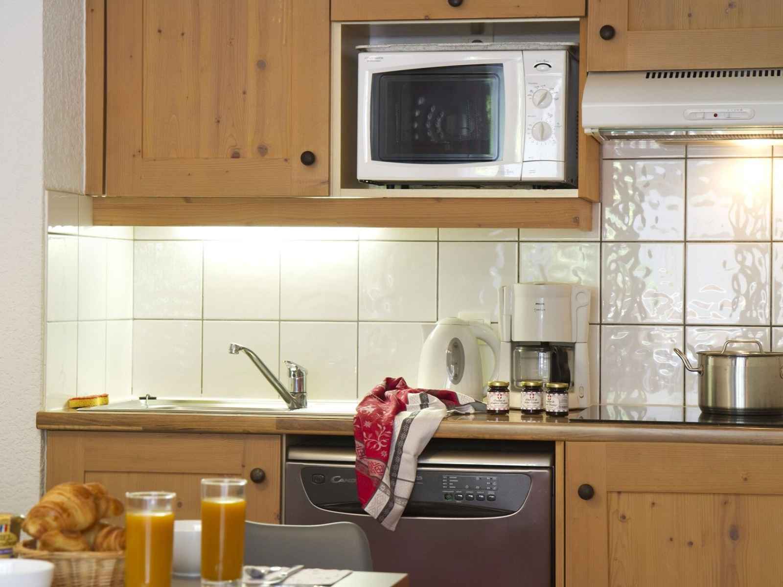 kitchenette équipée (plaque vitrocéramique, réfrigérateur 2 portes, micro-ondes/gril, lave-vaisselle, cafetière filtre, bouilloire, grille-pain)