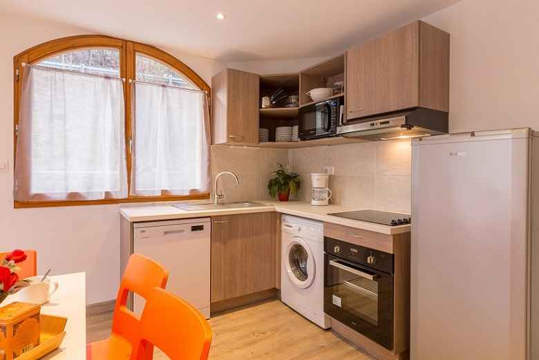 la télécabine du Prorel. Tous les commerces indispensables sont accessibles à pied. Appartement 3 pièces + cabine pour 8 personnes 77 m² : un coin cuisine aménagé avec réfrigérateur, (plaques vitrocéramique, four, lave-vaisselle...) Un séjour avec un canapé lit gigogne, télévision écran plat 2 Salle d’eau avec douche et toilette séparé Chambre 1 : lit double Chambre 2 : lit double Coin montagne : lits superposés WIFI gratuit, Accès à un casier à skis privé. Prestations non incluses dans le tarif : Linge de toilette, Linge de lit, matériel Bébé, Ménage de fin de séjour Appartement non-fumeur Animaux acceptés (taxe de 50€ par animal) Un parking couvert sécurisé payant se situe également à proximité.