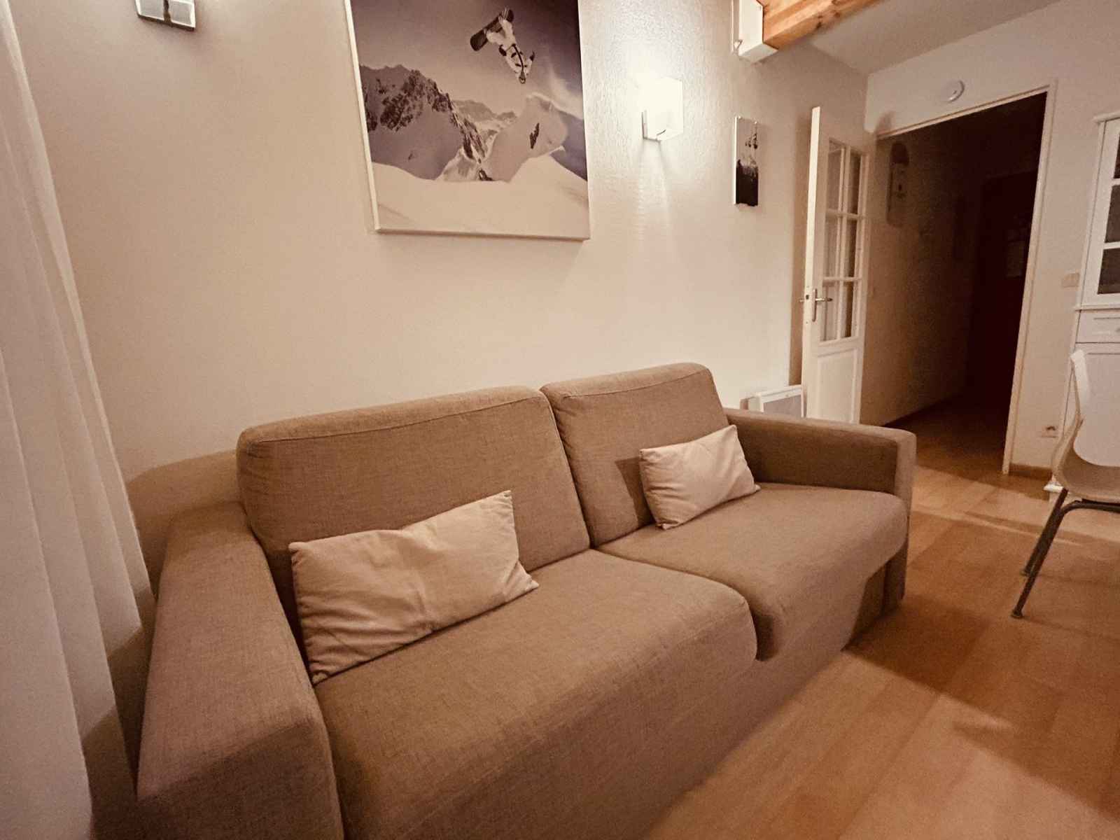 d’altitude, elle offre un accès privilégié aux pistes de ski et aux sentiers de randonnée en saison estivale. Description du logement Cet appartement très lumineux de 3 pièces, d’une superficie de 33 m², situé au dernier étage de la résidence avec ascenseur classée 2 étoiles, vous offre tout le confort nécessaire pour un séjour inoubliable à la montagne. Vous profiterez d’un séjour lumineux ouvrant sur un balcon exposé plein sud, idéal pour savourer la vue imprenable sur les sommets. L’appartement se compose : - séjour avec canapé non convertible - Chambre 1 : 1 lit double 160 cm, - Chambre 2 : 1 canapé bz 140 cm, - Salle de bain avec baignoire, - WC séparé, - Vous bénéficiez d’un casier à skis privatif, - Une place de parking abritée et une aérienne. Équipements principaux : - Lave-vaisselle, - Réfrigérateur-congélateur, - Plaques vitrocéramique 3 feux, - Four micro-ondes multifonctions, - Machine à café « Tassimo » - Cafetière, grille-pain et bouilloire. Prestations non incluses dans le tarif : - Linge de toilette, - Linge de lit, - Matériel Bébé, - Ménage de fin de séjour. - Appartement non-fumeur - Animaux non-acceptés