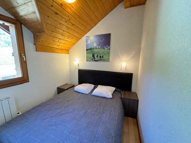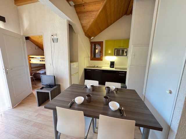 de ski et aux sentiers de randonnée en saison estivale. Cet appartement 3 pièces de 33 m², situé au 2 eme étage de la résidence avec ascenseur, vous offre tout le confort nécessaire pour un séjour inoubliable à la montagne. L’appartement se compose : - Séjour : canapé lit 2 personnes - Coin cuisine avec lave-vaisselle, réfrigérateur-congélateur, plaques vitrocéramique, four micro-ondes multifonctions, cafetière, grille-pain et bouilloire. - Chambre 1 : 1 lit double 160 cm, - Chambre 2 : lits superposés, - Salle de bain - WC séparé Vous bénéficiez d’un casier à skis privatif, ainsi qu'une place de parking abritée. Prestations non incluses dans le tarif : - Linge de toilette, - Linge de lit, - Ménage de fin de séjour, - Matériel Bébé, Appartement non-fumeur Animaux non-acceptés