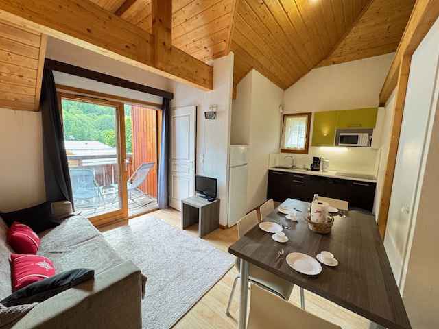 appartement 3 pièces de 33 m², situé au dernier étage de la résidence avec ascenseur, vous fait la promesse d'une vue impressionnate sur les montagnes et la nature. L’appartement se compose : - Séjour avec canapé convertible pour 2 personnes - Chambre 1 : 1 lit double 160 cm, - Chambre 2 : canapé convertible pour 2 personnes - Salle de bain avec baignoire, - WC séparé, - Vous bénéficiez d’un casier à skis privatif, - Une place de parking abritée et une aérienne. Équipements principaux : - Lave-vaisselle, - Réfrigérateur-congélateur, - Plaques vitrocéramique 3 feux, - Four micro-ondes multifonctions, - Machine à café - Cafetière, grille-pain et bouilloire. Prestations non incluses dans le tarif : - Linge de toilette, - Linge de lit, - Matériel Bébé, - Ménage de fin de séjour. - Appartement non-fumeur - Animaux non-acceptés