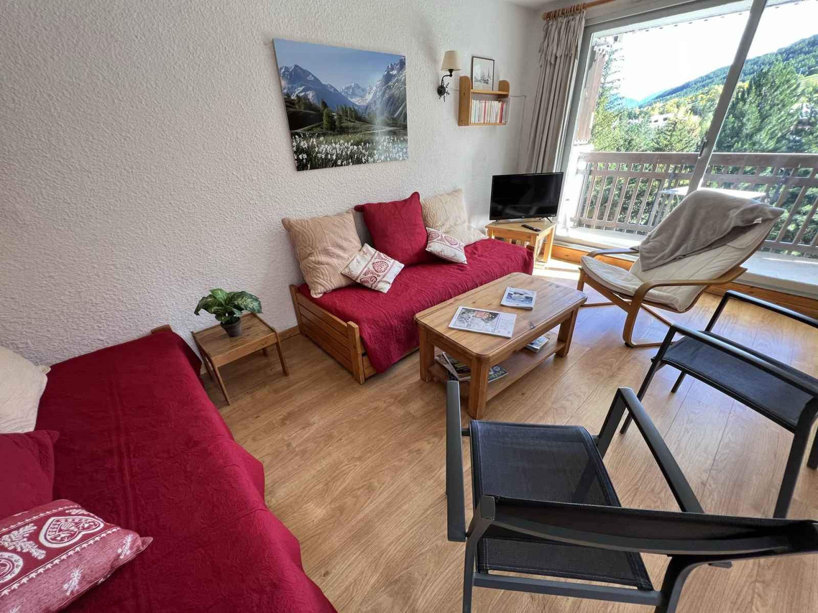 un séjour avec 2 banquettes lits gigognes, tv, balcon avec magnifique vue sur les pistes