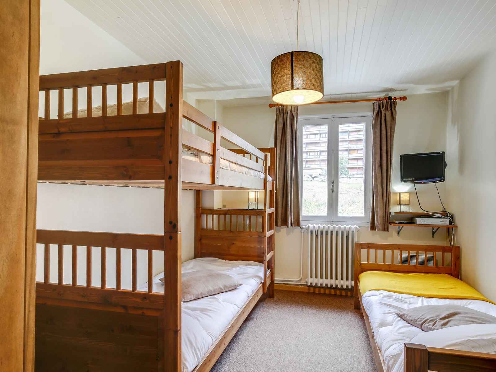 serez à 5 minutes à pied des pistes et 2 minutes des commerces. L'appartement a fait l'objet d'un classement "3 oreillers" par la commune Les couchages La 1ère chambre comprend 1 lit 1 personne et 1 ensemble de lits superposés ainsi qu'une TV écran plat. Le couchage en hauteur ne convient pas à des enfants de moins de 6 ans La seconde chambre vous offre 1 lit double et comprend un lavabo et un WC. Dans le séjour se trouve 1 canapé convertible 2 personnes Les sanitaires A votre disposition une salle de bains avec baignoire et un WC Cuisine semi ouverte sur séjour Elle est très fonctionnelle et entièrement équipée avec des plaques vitro céramiques, un réfrigérateur, un lave vaisselle, un four et un micro-ondes/grill Les équipements complémentaires Une TV écran plat dans le séjour et un lecteur DVD Un casier à ski Informations supplémentaires Linge de lit et de toilette en supplément. Nos amis les animaux ne sont pas tolérés dans cet appartement. Appartement non fumeur