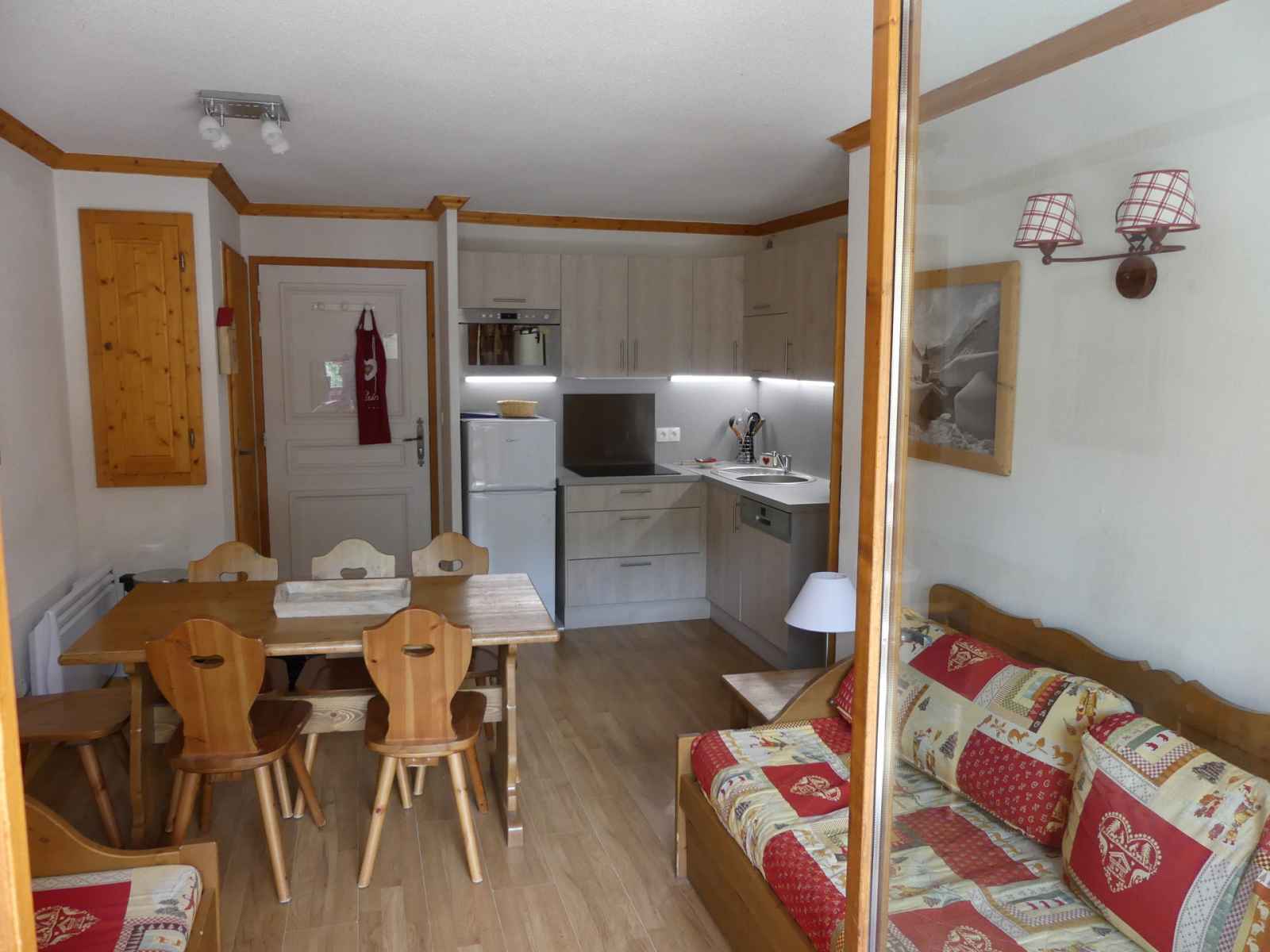 lits simples) Literie avec couvertures et couettes EQUIPEMENTS : Pièce de vie (18m²/ Ouest) - Coin cuisine : four multi-fonctions (four-crisp et micro-ondes), lave-vaisselle, réfrigérateur/congélateur et plaque induction (3 foyers). - Coin salon : télévision et Wifi. Salle de bain : lavabo, baignoire et sèche-cheveux. WC indépendant. Salle d'eau (dans la chambre 1) : lavabo et douche SERVICES/OBSERVATIONS : Animaux refusés. Linge de lit et de toilette non fournis. Ménage de fin de séjour non inclus. Casier à skis. Balcon (Ouest) avec salon de jardin. Une place de parking privée en extérieure (n° 002). Dans le bâtiment Edelweiss (à 100m) : accès à la piscine (gratuit) ; accès au sauna (avec supplément) ; accès à la laverie (avec supplément). L'accès Piscine pourrait être fermé ou à usage limité par décision administrative. De ce fait, une éventuelle fermeture ne pourra faire l’objet d'une d’indemnisation.