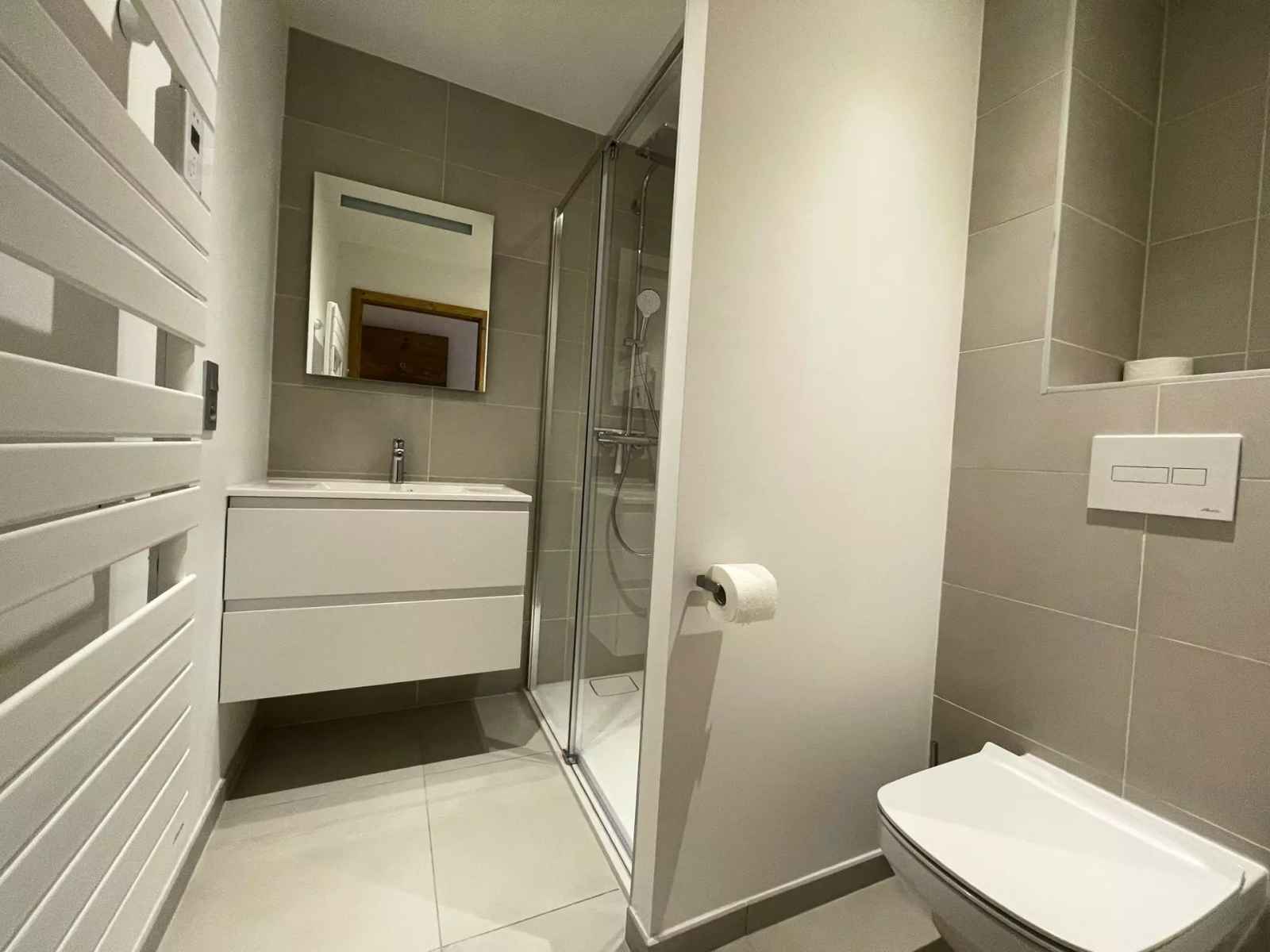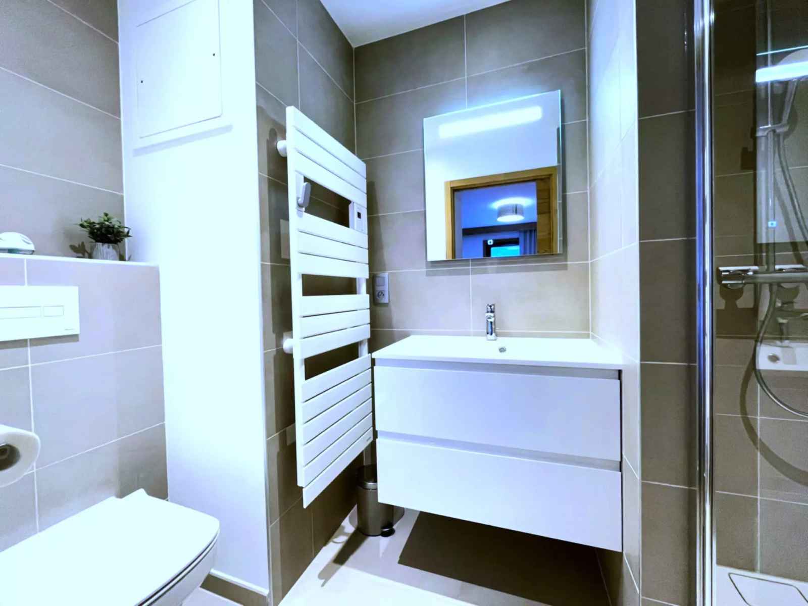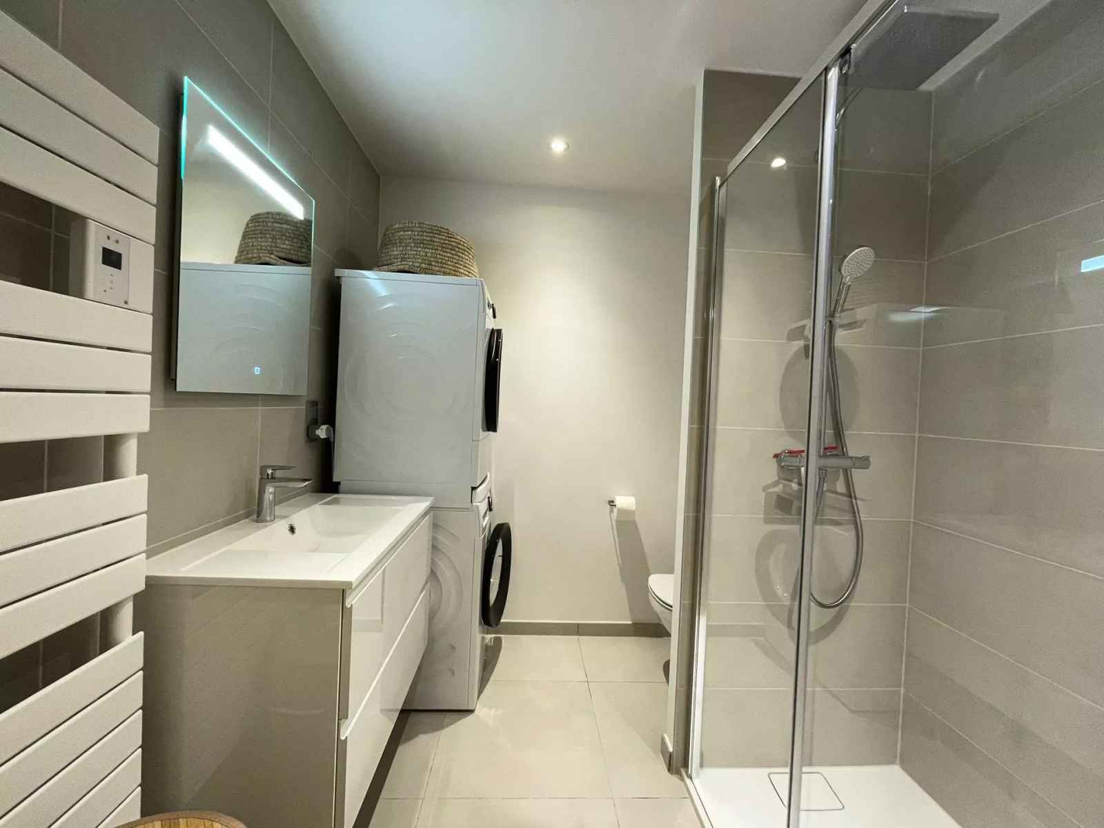 - Salle de douche avec WC, lave-linge et sèche - linge