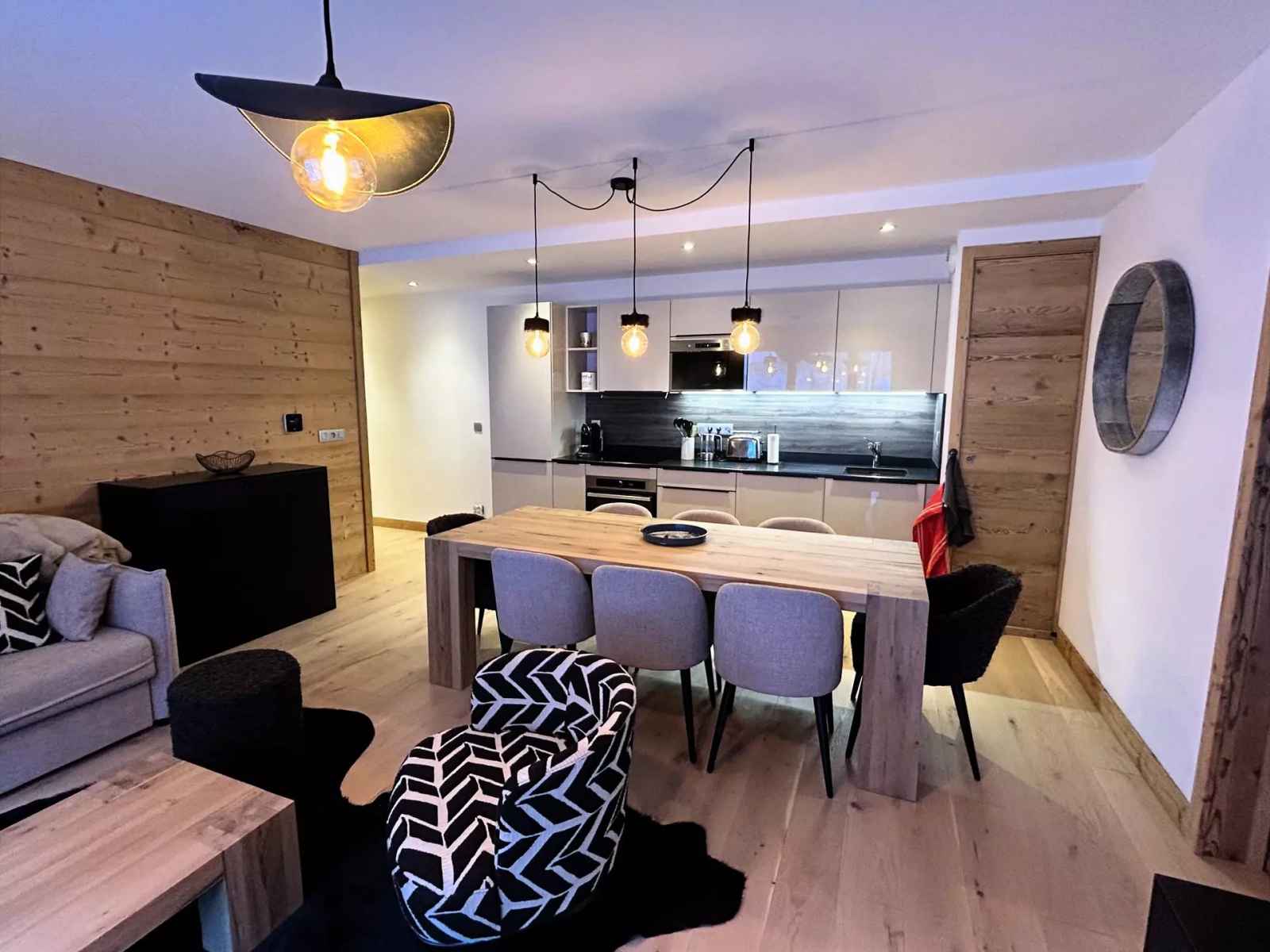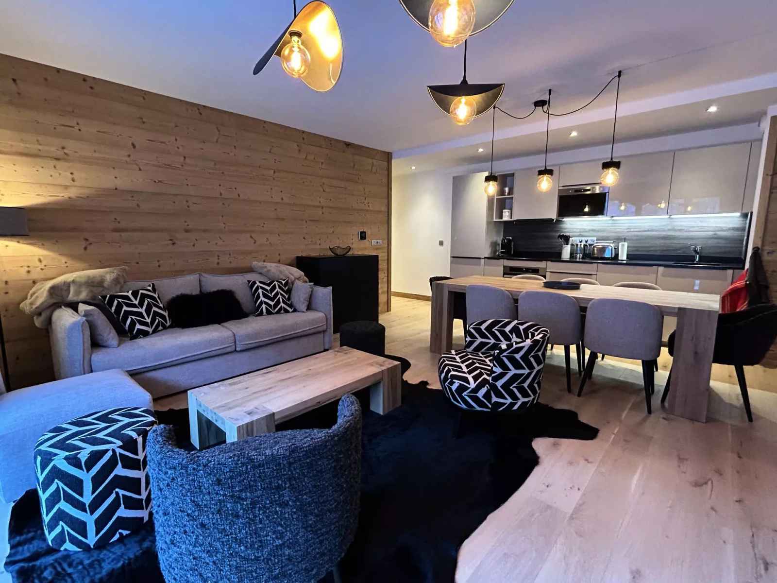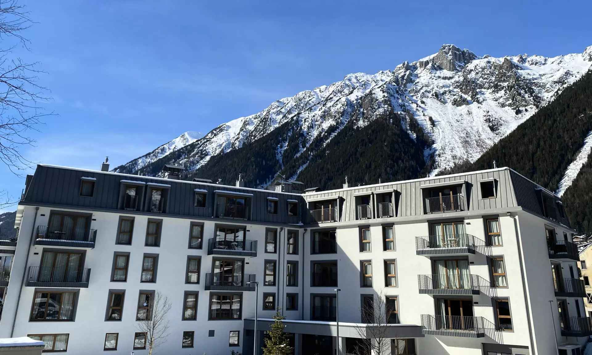 très bel appartement de 83m² pour 6 personnes, au 1er étage avec ascenseur de la nouvelle résidence blanc mont-blanc située dans le centre de chamonix, au calme.