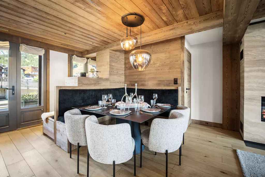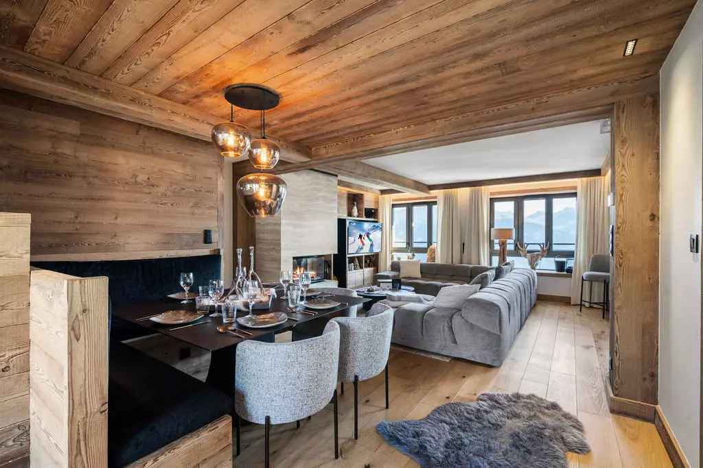 appartement moderne d'environ 115m² pour 6 personnes avec 3 chambres, situé à proximité des pistes dans le quartier centre de courchevel.