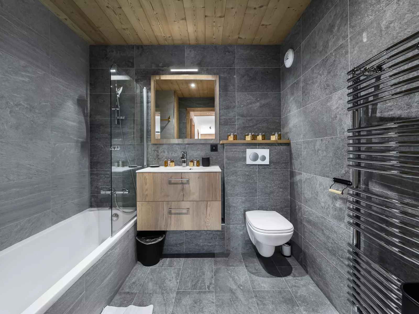 - Une salle de bain, toilettes, double vasque