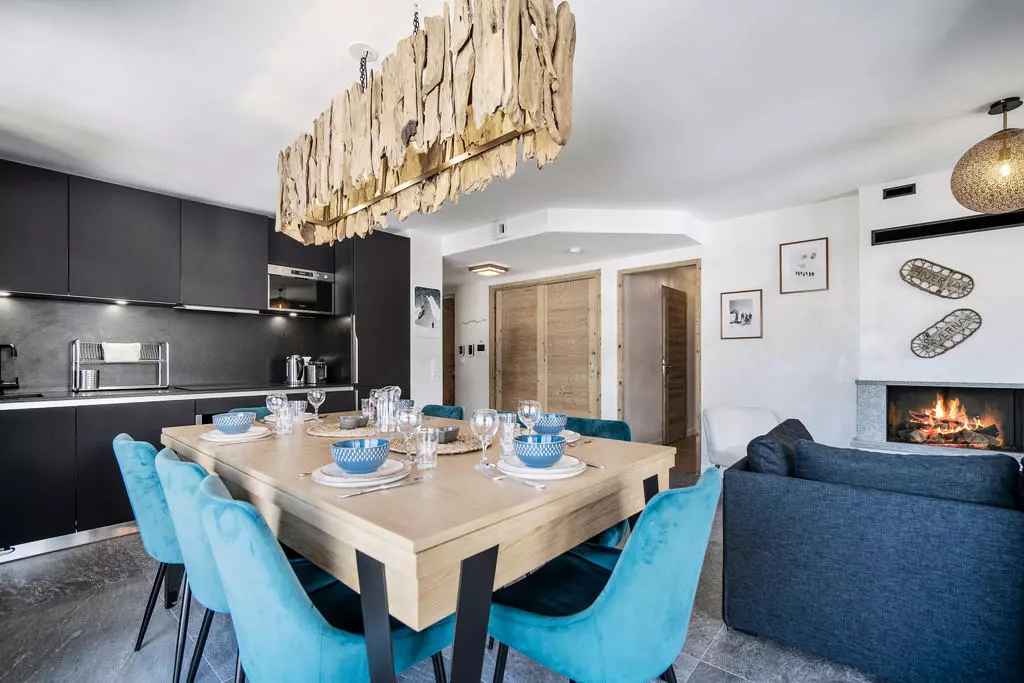 - Cuisine ouverte équipée : lave-vaisselle, four, micro-onde, réfrigérateur, congélateur, plaques à induction, cafetière Nespresso, bouilloire, grille-pain, robot mixeur