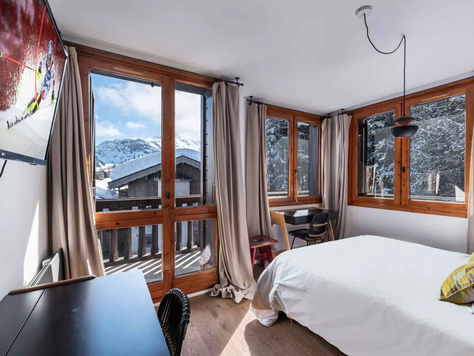 - Une chambre double avec balcon, bureau, TV,
