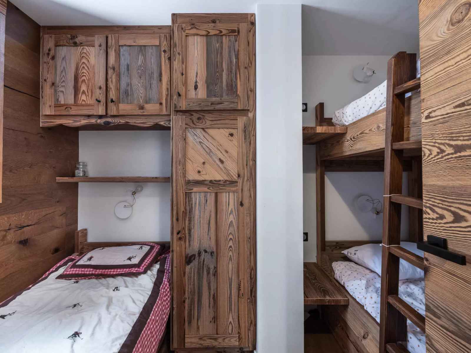 Une chambre enfant avec 1 lit superposés et un lit simple,