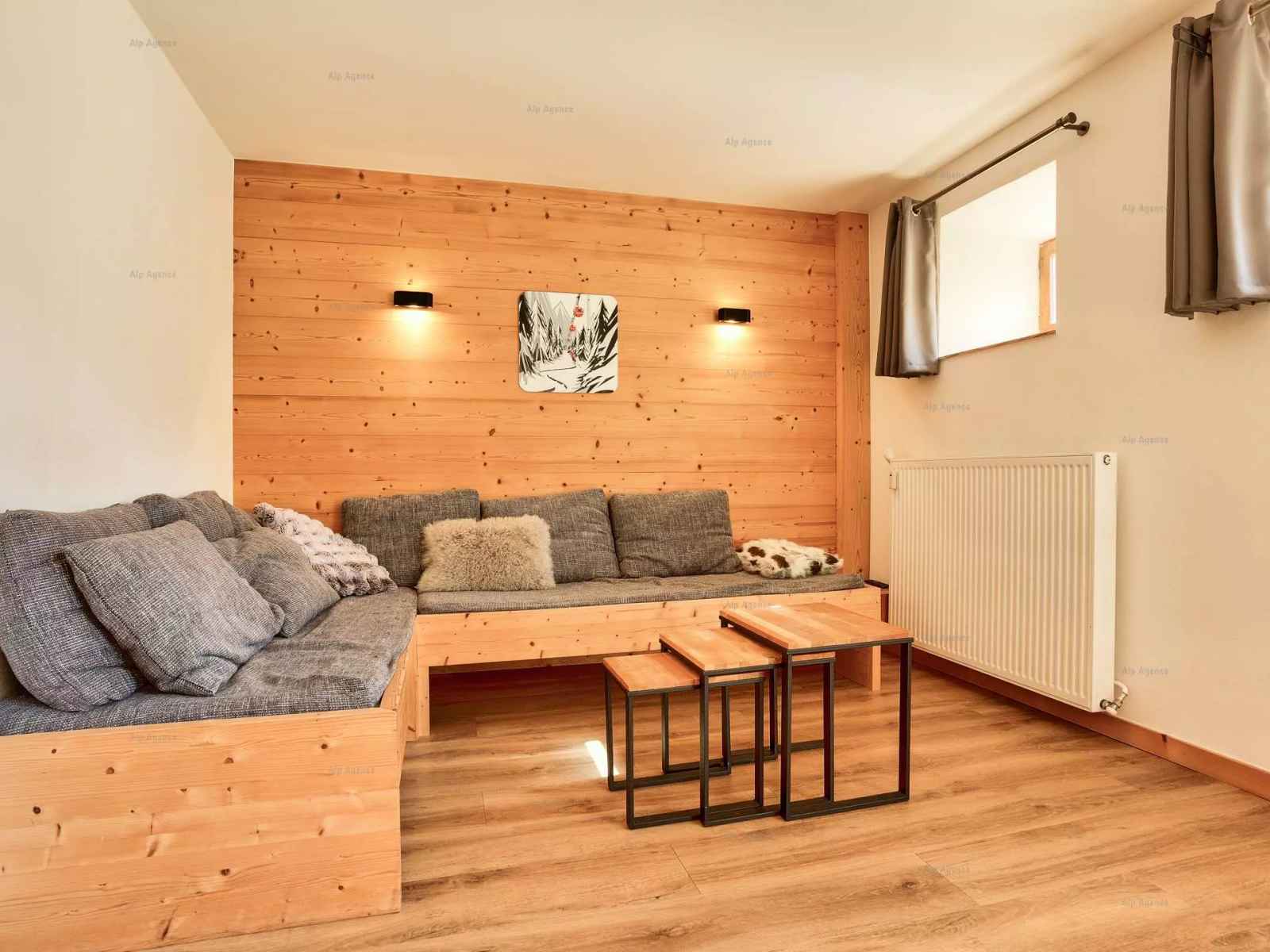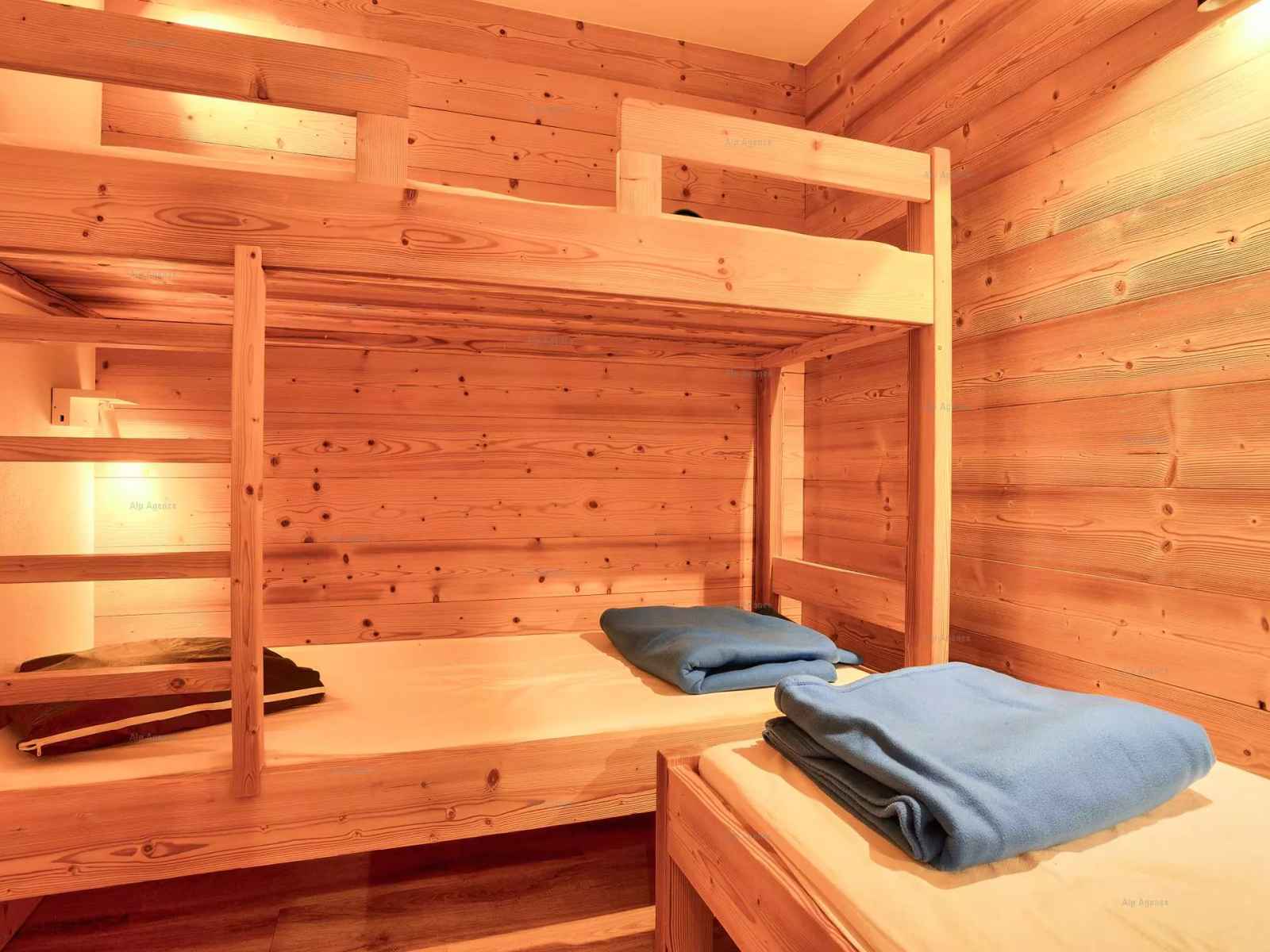 banquette d'angle (2 lits 1 pers pers 90cm), Télévision. Salle de bains avec douche et wc séparés - A l'étage niveau 2 : Chambre 1 (à gauche) : 2 lits 1 pers, Télévision - Chambre 2 : 1 lit 2 pers 140cm fenêtre donnant sur le salon, TV - Chambre 3/ Cabine (sans fenêtre) : 2 lits superposés 80cm et 1 lit 1p 80cm - Salle de bains : baignoire WC inclus - lave-linge - Literie : couvertures dont 1 double. Sol : plastique - Casier à skis n° 132 au rdc côté UCPA. Appartement de bon confort bénéficiant d'une très belle vue sur les pistes -ANIMAUX NON ADMIS et APPT NON FUMEUR - Ménage de fin de séjour, draps, serviettes et forfaits ski sont en option - Résidence située au pied des pistes, reliée aux commerces par galerie.