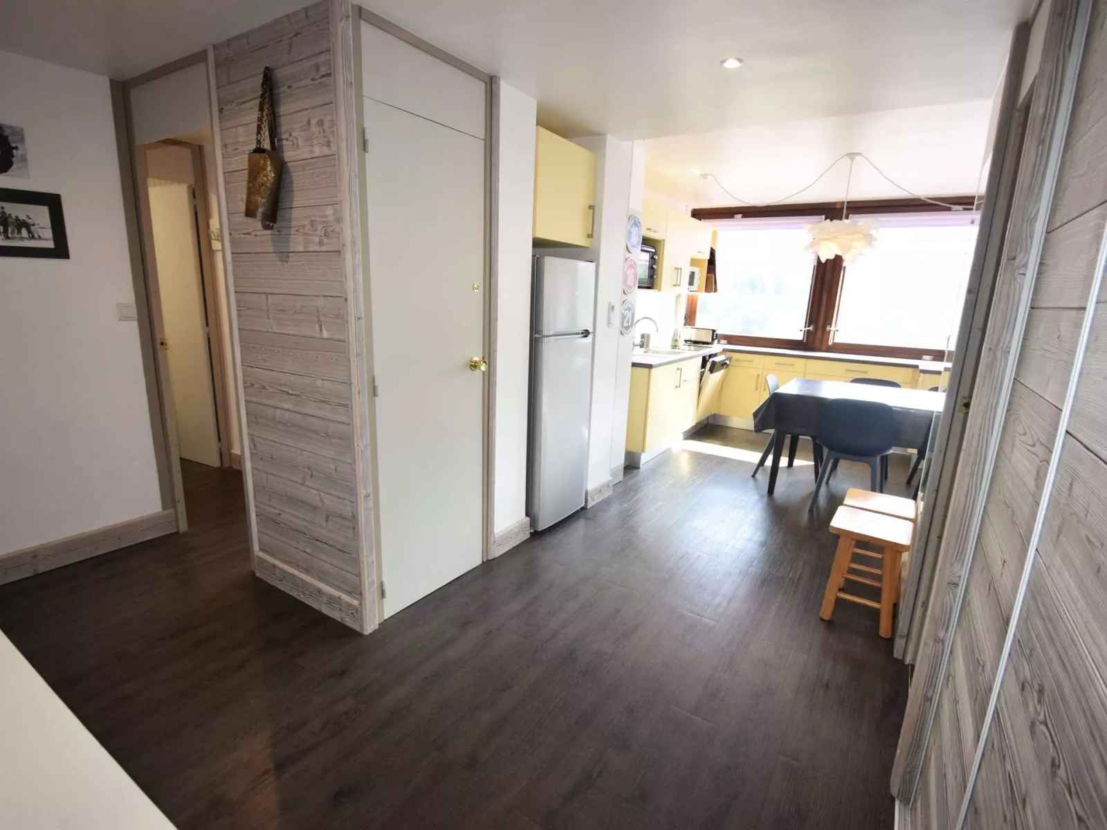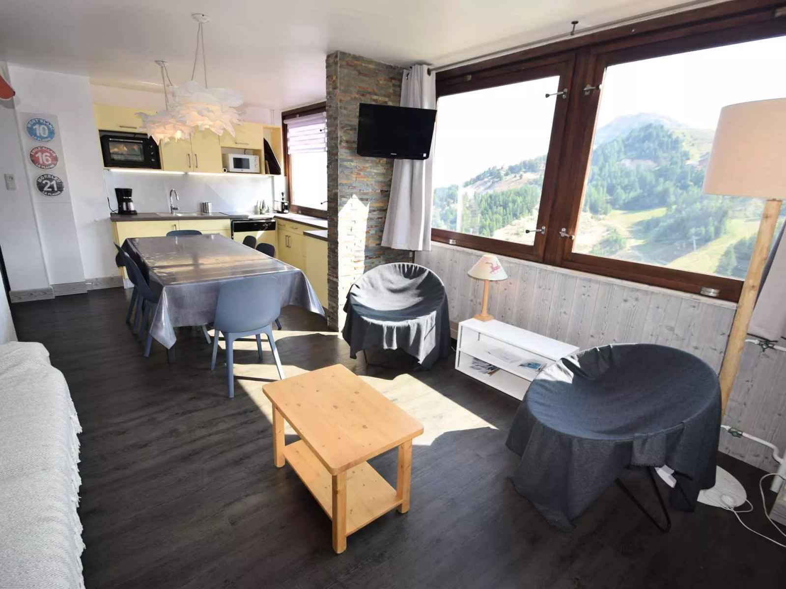 appartement 4 pièces, 8/10 pers.,80m2, rénové, balcon exposé plein sud, belle vue sur les pistes - 13ème étage avec ascenseur - cuisine ouverte sur séjour : 3 plaques élect., four, four micro-ondes, grand réfrigérateur avec