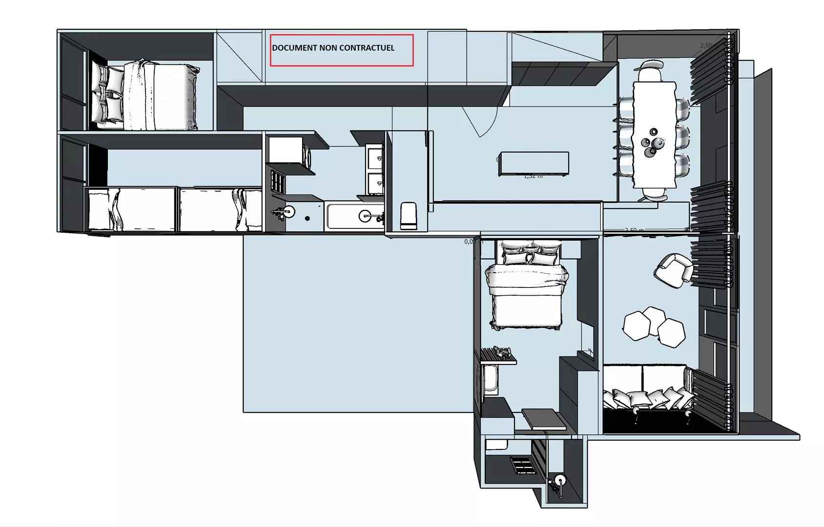 Les photos illustrent des appartements types de la résidence. Elles sont représentatives mais non contractuelles, seul le descriptif texte fait foi pour la configuration.