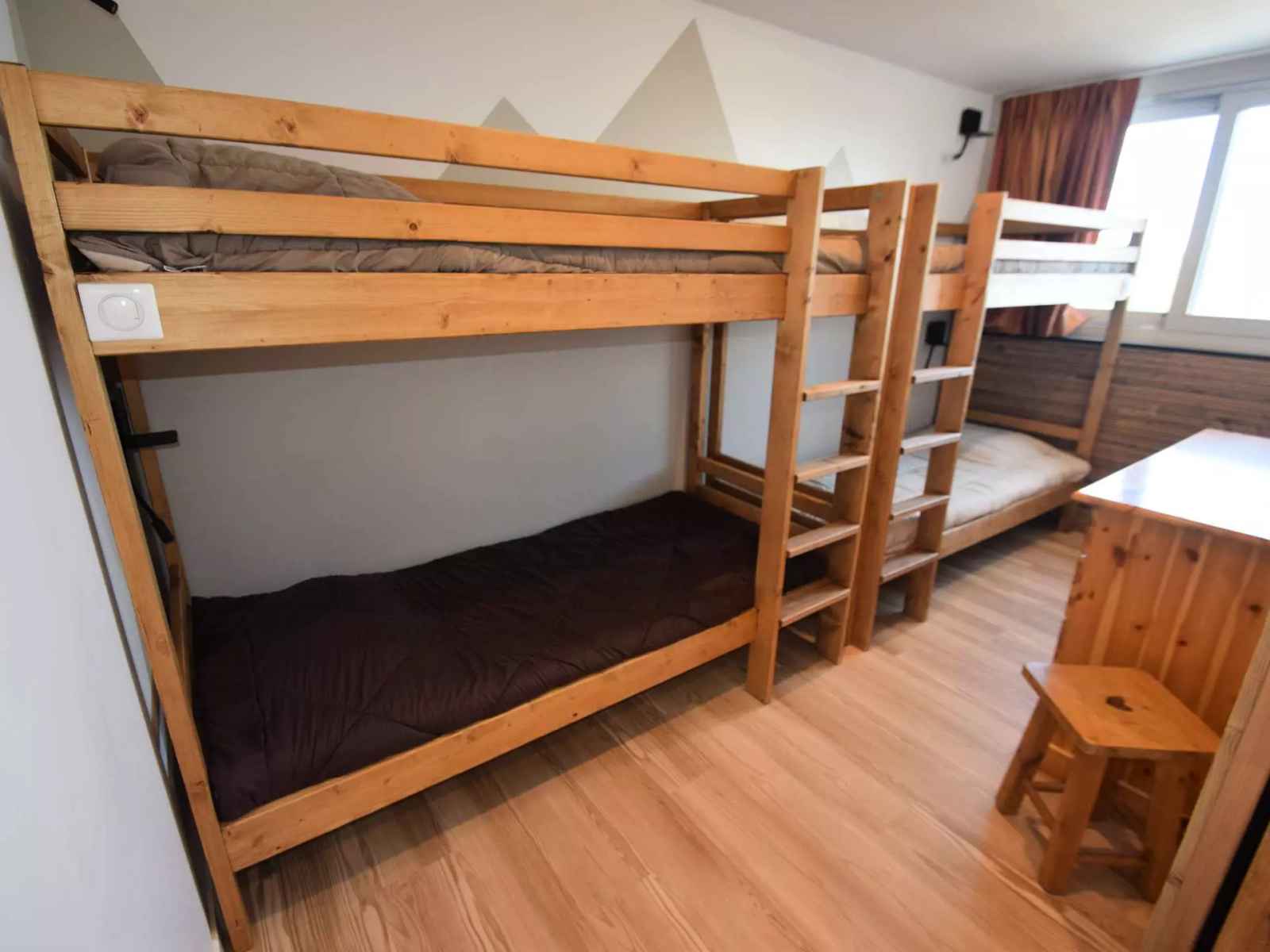 Séjour : coin repas, coin salon TV - Chambre 1 : 1 lit double 160cm, Chambre 2 : 2 x2 lits superposés 80X190cm - Chambre 3 (sans fenêtre ) : 1 lit double 140cm - Salle de bain : baignoire et douche - WC séparés - Salle de douche et wc inclus. Lave-linge et sèche-linge - Literie couettes - Appartement non fumeur, animaux non admis. En option et en supplément: Ménage de fin de séjour, draps, serviettes, forfaits ski.