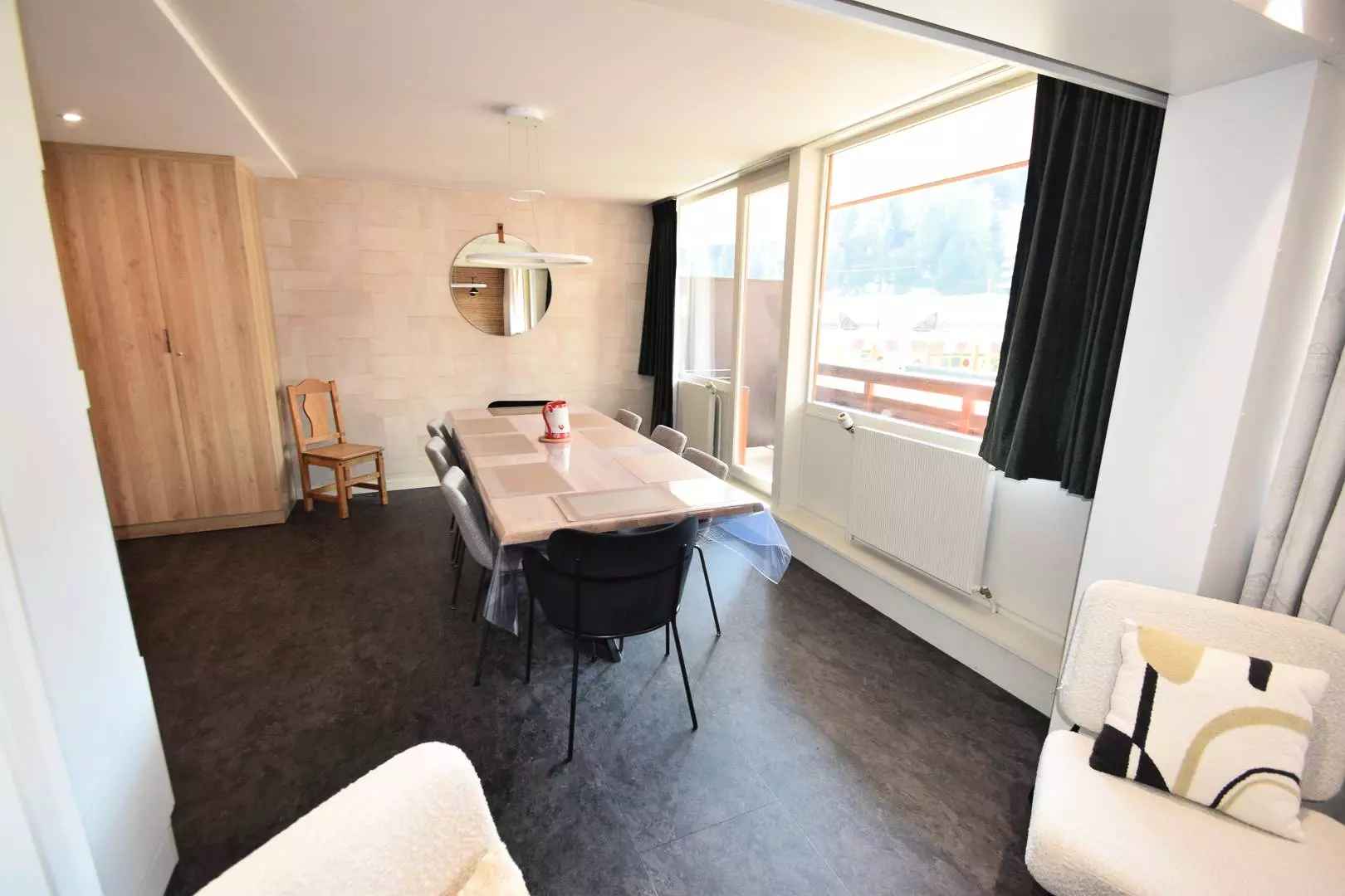Appartement entièrement de très bon confort et très bien situé avec 2 balcons exposés plein Sud - Casier à skis N°102 et 103 sortie pistes - LE VERCORS : située au cœur de la station et au pied des pistes, reliée directement à la galerie marchande - parking extérieur à proximité de la résidence. Accès à la résidence depuis le parking et galerie par escaliers -