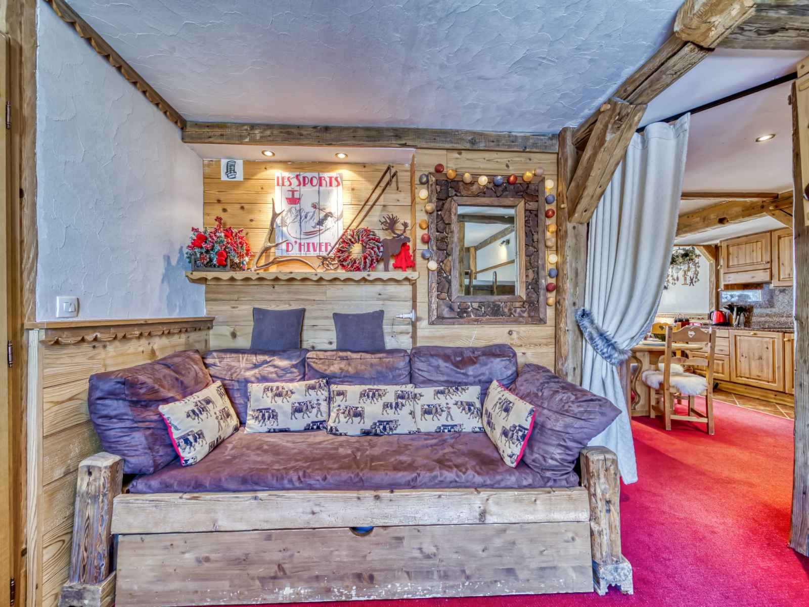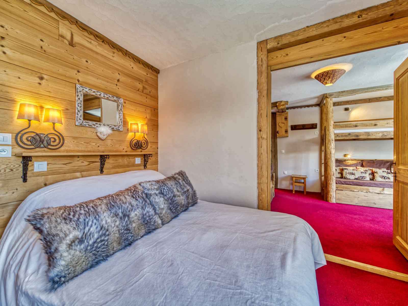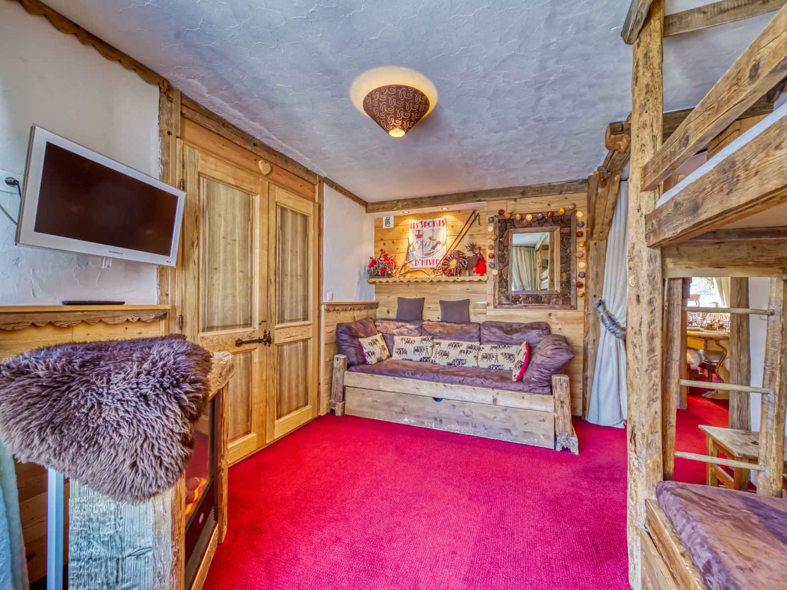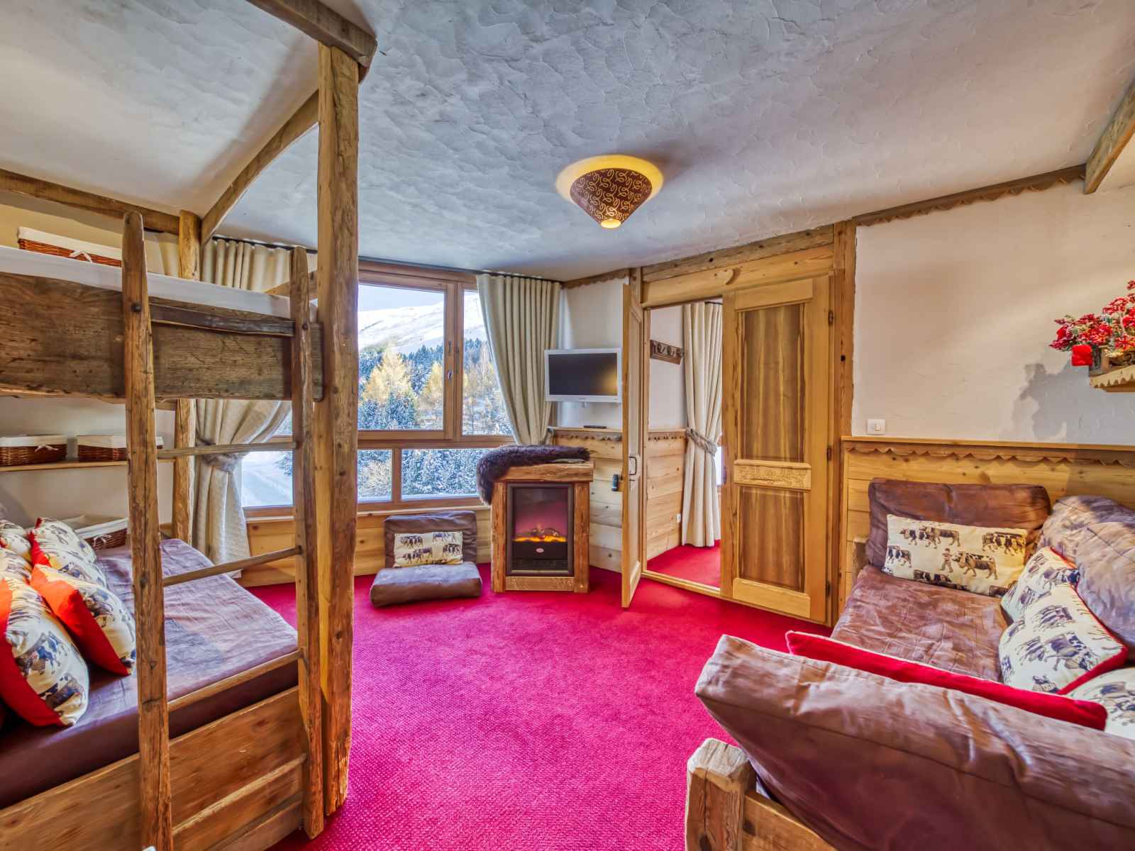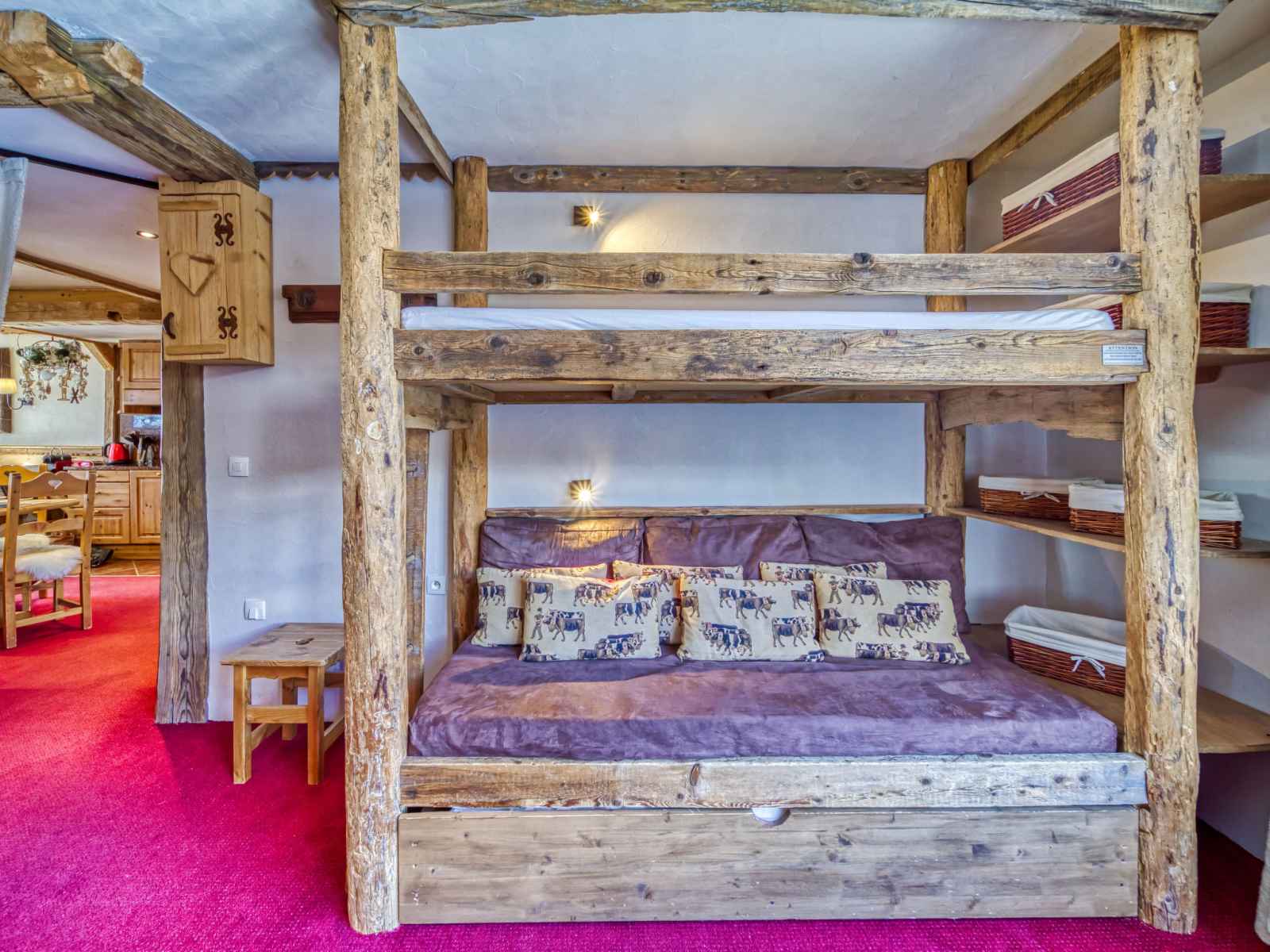 superposés (80 cm, longueur 190 cm), 1 lit gigogne (2 pers. 2 x 80 cm, longueur 190 cm), TV (écran plat). 1 grande chambre avec porte coulissante avec 1 grand-lit (140 cm, longueur 190 cm), douche/WC et TV (écran plat). Cuisine ouverte (four, lave-vaisselle, 3 plaques à induction, grille-pain, bouilloire électrique, micro-ondes, cafetière électrique, Capsules pour machine à café (Nespresso) (NON INCLUSES), appareil à raclette). Douche, WC séparé. Chauffage par le sol. Balcon, situation sud. Très belle vue sur les montagnes, la vallée et les pistes de ski. A disposition: sèche-cheveux. Internet (Connexion WIFI, en sus). Veuillez noter: logement non-fumeur. Détecteur de fumée. 73257004886HT