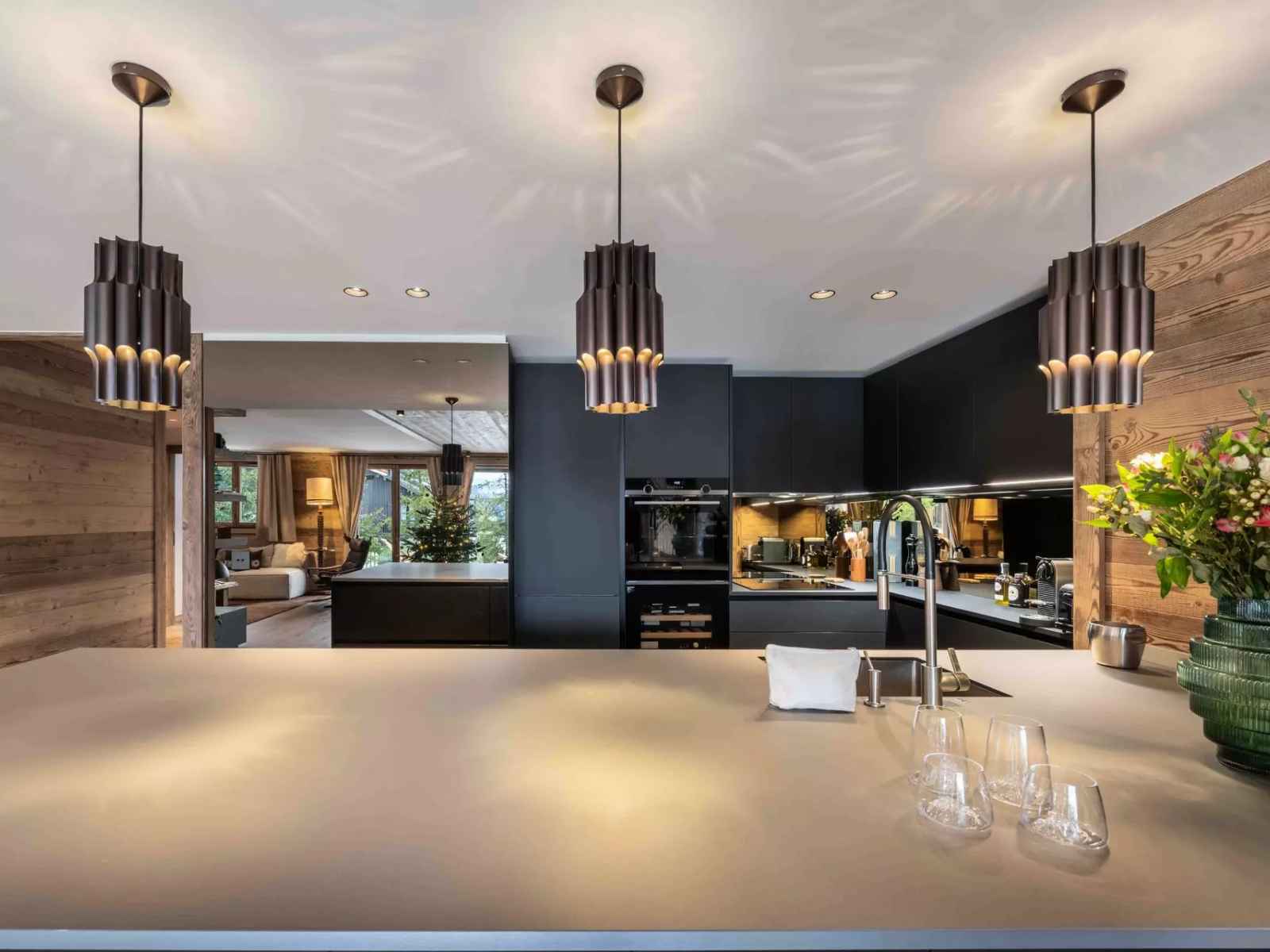 s’organise autour d’un salon chaleureux, d’une cuisine ouverte entièrement équipée, et d’un espace repas convivial. La décoration, soigneusement travaillée, met en valeur des pièces d’art sélectionnées, un mobilier raffiné et des finitions de haute qualité, créant une atmosphère à la fois contemporaine et authentiquement alpine. Les trois chambres disposent chacune de leur propre salle d’eau ou salle de bain, offrant à chaque occupant intimité et confort. Le Chauffage au sol, les toilettes invités ainsi qu’un espace buanderie avec lave-linge et sèche-linge complètent les prestations.