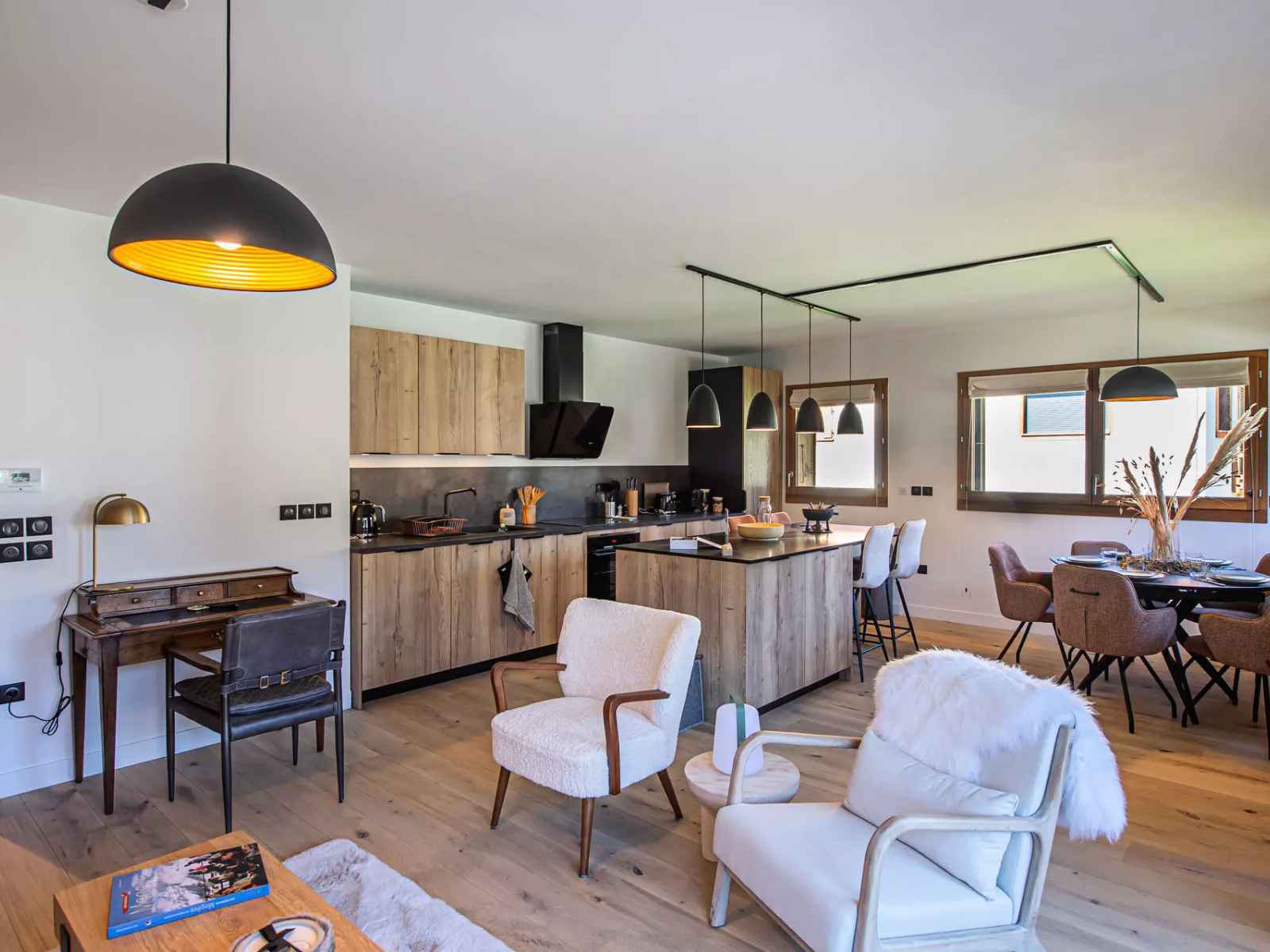 situé dans le secteur du prariand, cet appartement au style chic alpin bénéficie d'une belle exposition et d'une vue sur les montagnes enneigées. a quelques minutes du centre historique de megève à pied, en retrait de la route, se trouve la résidence silver lodge, un véritable havre de paix dans