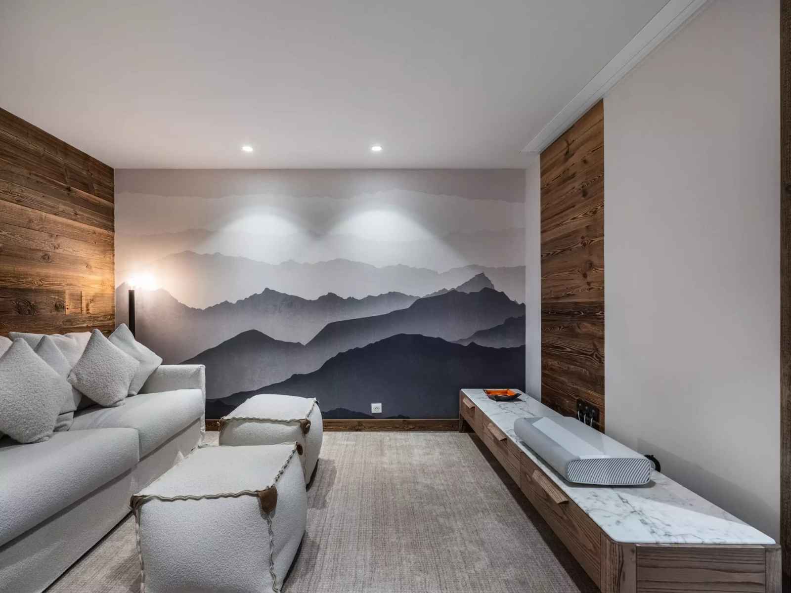 salle de cinéma offrant un couchage supplémentaire sur demande. Au dernier étage, la pièce de vie lumineuse comprend une cuisine équipée, un espace repas et un salon avec cheminée.