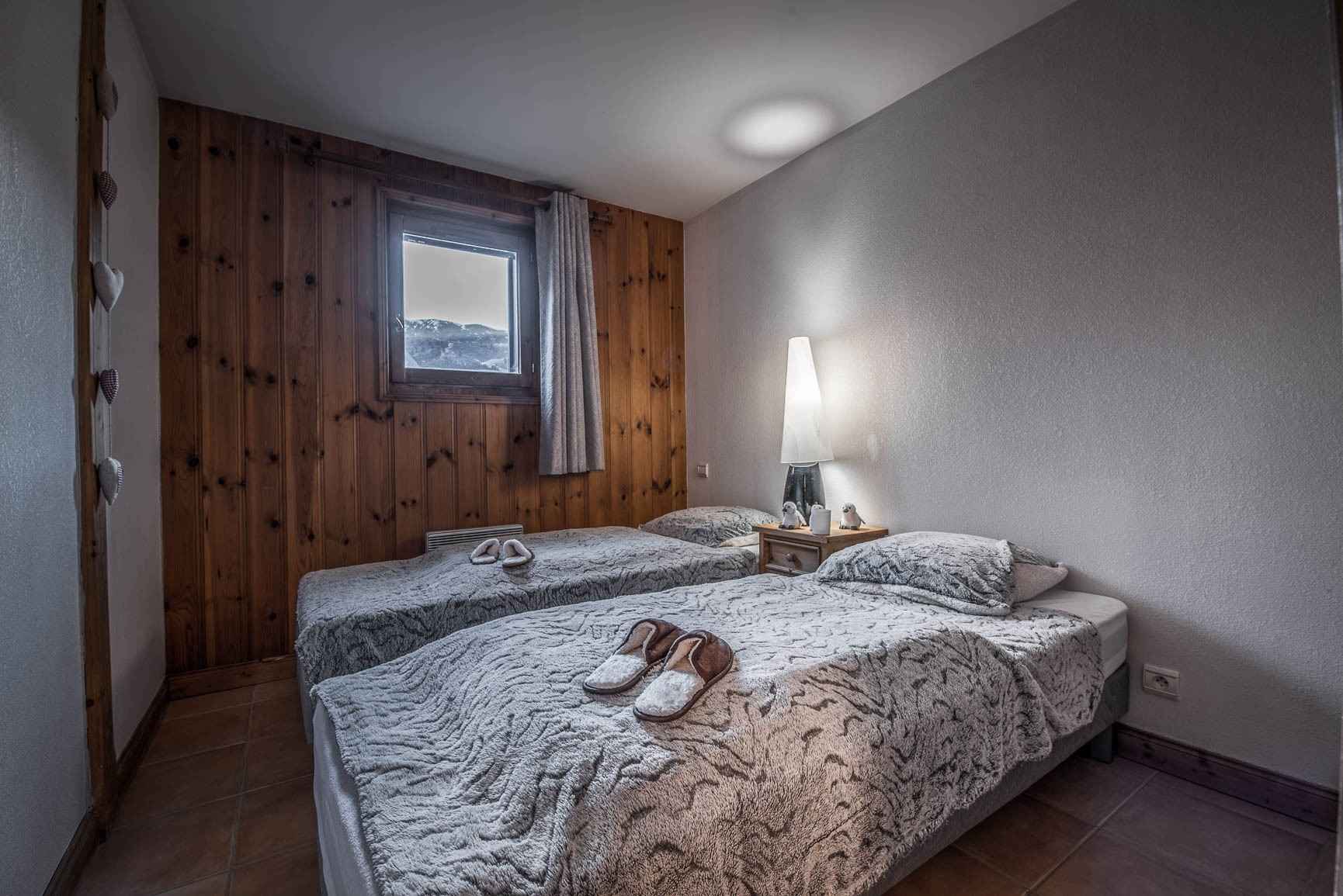 balcon avec vue sur les pistes. Appartement entièrement rénové. Les couchages Il dispose de 3 chambres: 1 chambre avec lit double (160x200 cm) 1 chambre avec 2 lits simples (2x90cm) 1 chambre avec lits superposés (2x80cm). Le couchage en hauteur ne convient pas aux enfants de moins de 6 ans. Les sanitaires Une salle de bain avec WC et une salle de douche avec WC. Les équipements complémentaires Les 2 chambres doubles disposent de TV. Cet appartement dispose d'un casier à ski et d'une place de parking couverte (Largeur : 2m40, Hauteur : 2m15, Profondeur : 6m). Les informations supplémentaires Nos amis les animaux ne sont pas tolérés dans cet appartement. Appartement non fumeur Le linge de lit, de toilette et lits faits à l’arrivée sont inclus sauf pour les courts séjours et en été. Une clé 4g est disponible sur demande à votre agence CIS à la location au tarif de €41/semaine. Possibilité de réserver des forfaits de ski avec tarif avantageux (hors vacances scolaires)