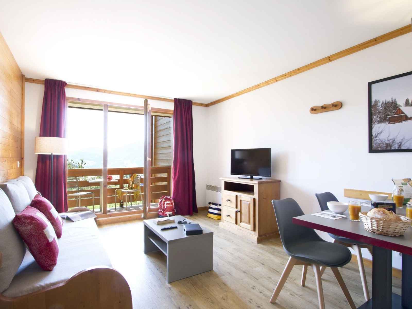 l’une de l’autre, les deux résidences proposent des appartements ouverts sur un balcon ou une terrasse, dotés d’un accès wifi et répartis dans deux grands chalets proposant chacun une piscine couverte chauffée et un sauna (avec participation).