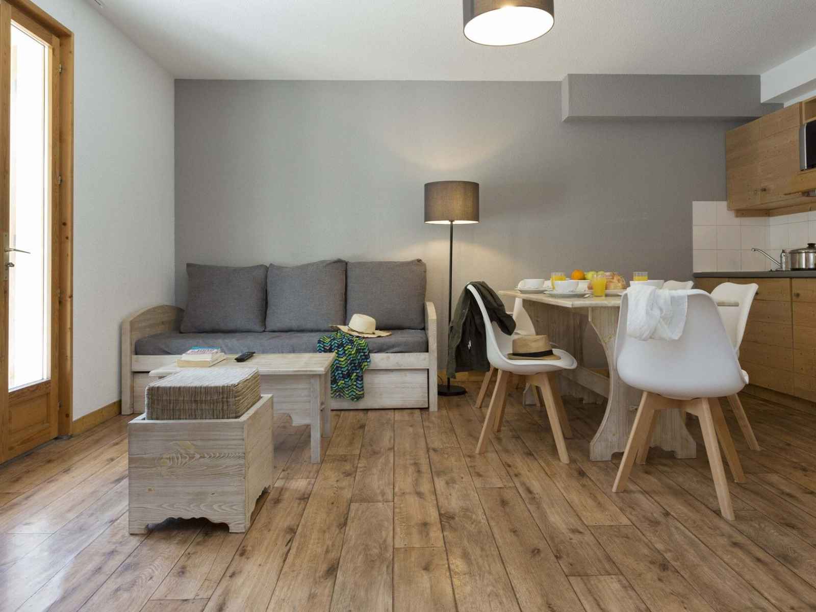 55m2, séjour avec un canapé gigogne