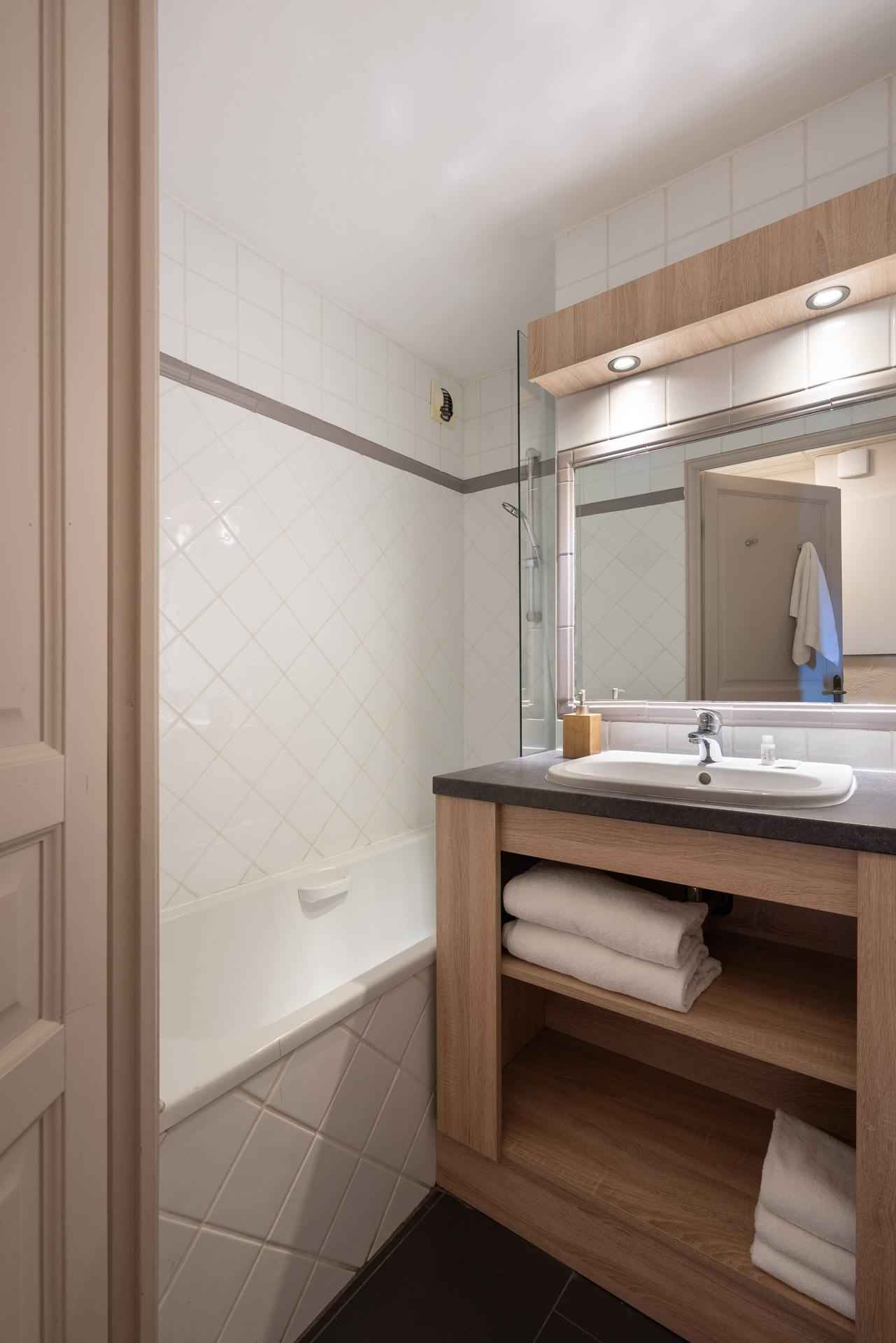 parentale avec lit double (180x180) et sa salle d'eau (douche et toilette) Deuxiéme chambre avec deux lits jumeaux (180x90) Troisiéme chambre avec deux lits jumeaux (180x90) Salle de bain avec baignoire, lavabo et séche-serviettes. Toilettes séparées Les atouts bien-être Accédez librement à la piscine chauffée de la résidence et à un espace bien-être avec sauna et hammam, pour des moments de pure relaxation après une journée bien remplie. Connexion internet à disposition pour rester connecté tout au long de votre séjour. Casier à ski equipé de séche-chaussures. Lits faits à l'arrivée serviettes incluses * kit de salle de bain Occitane