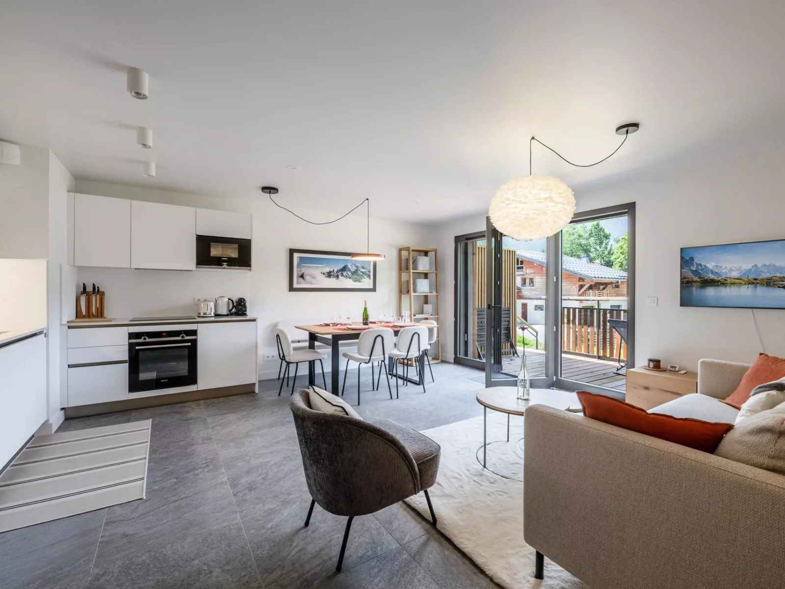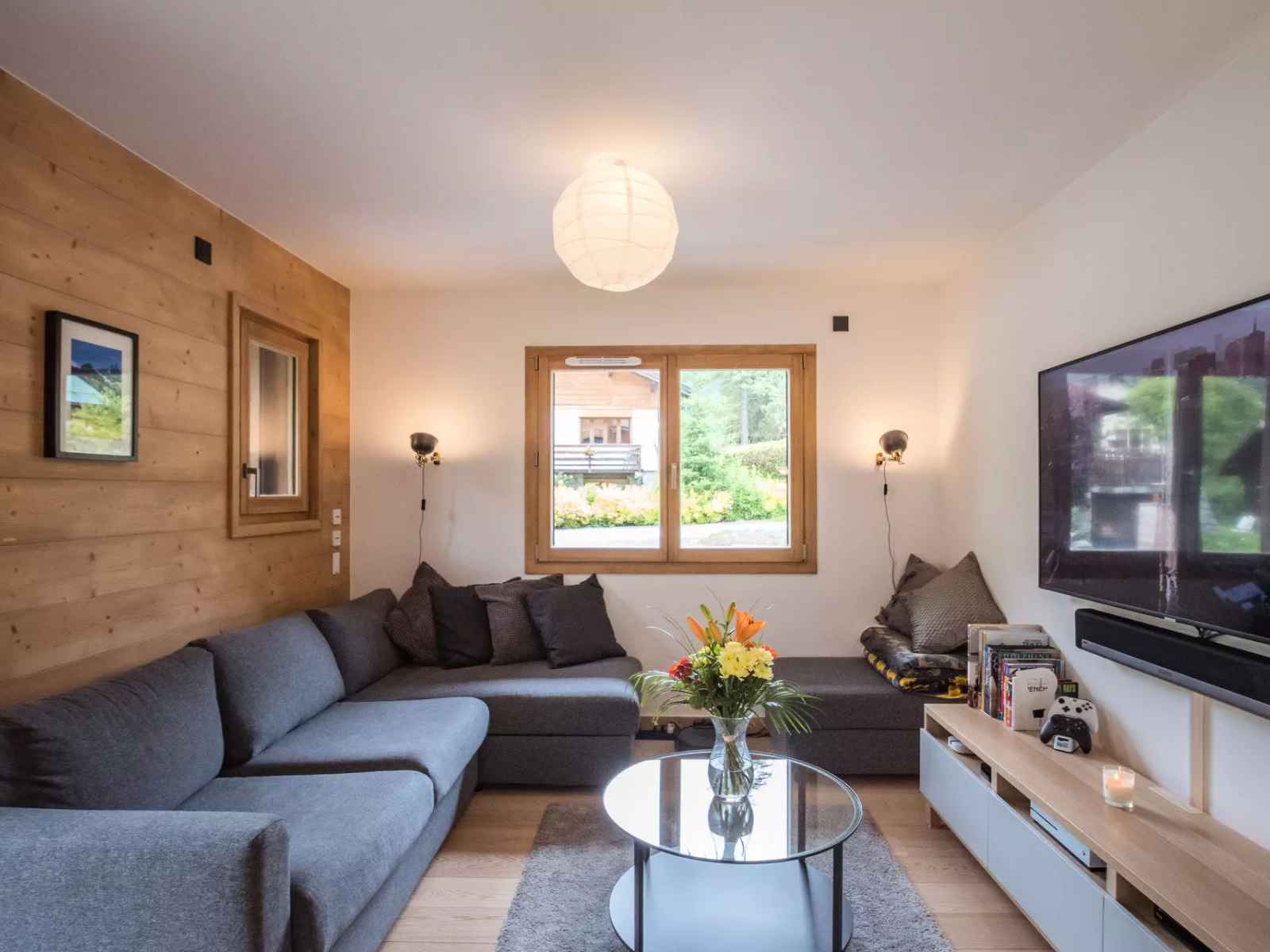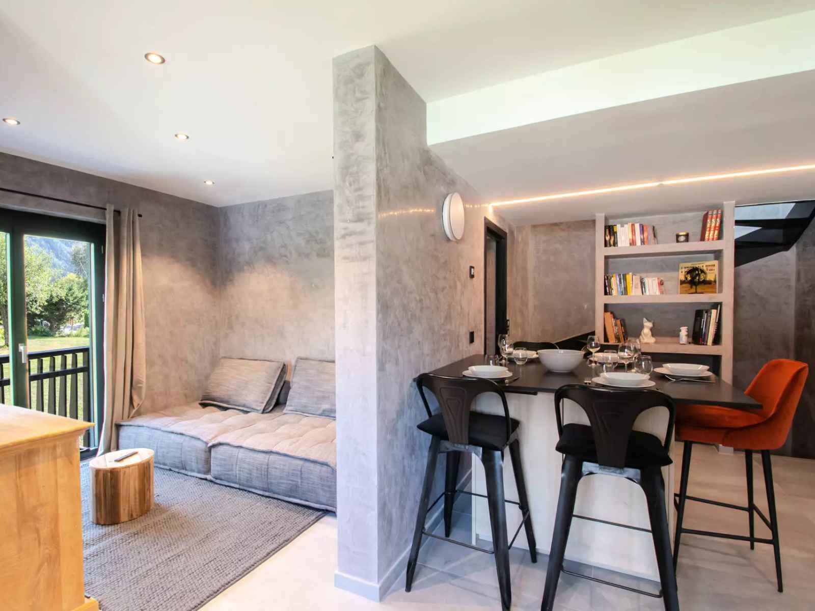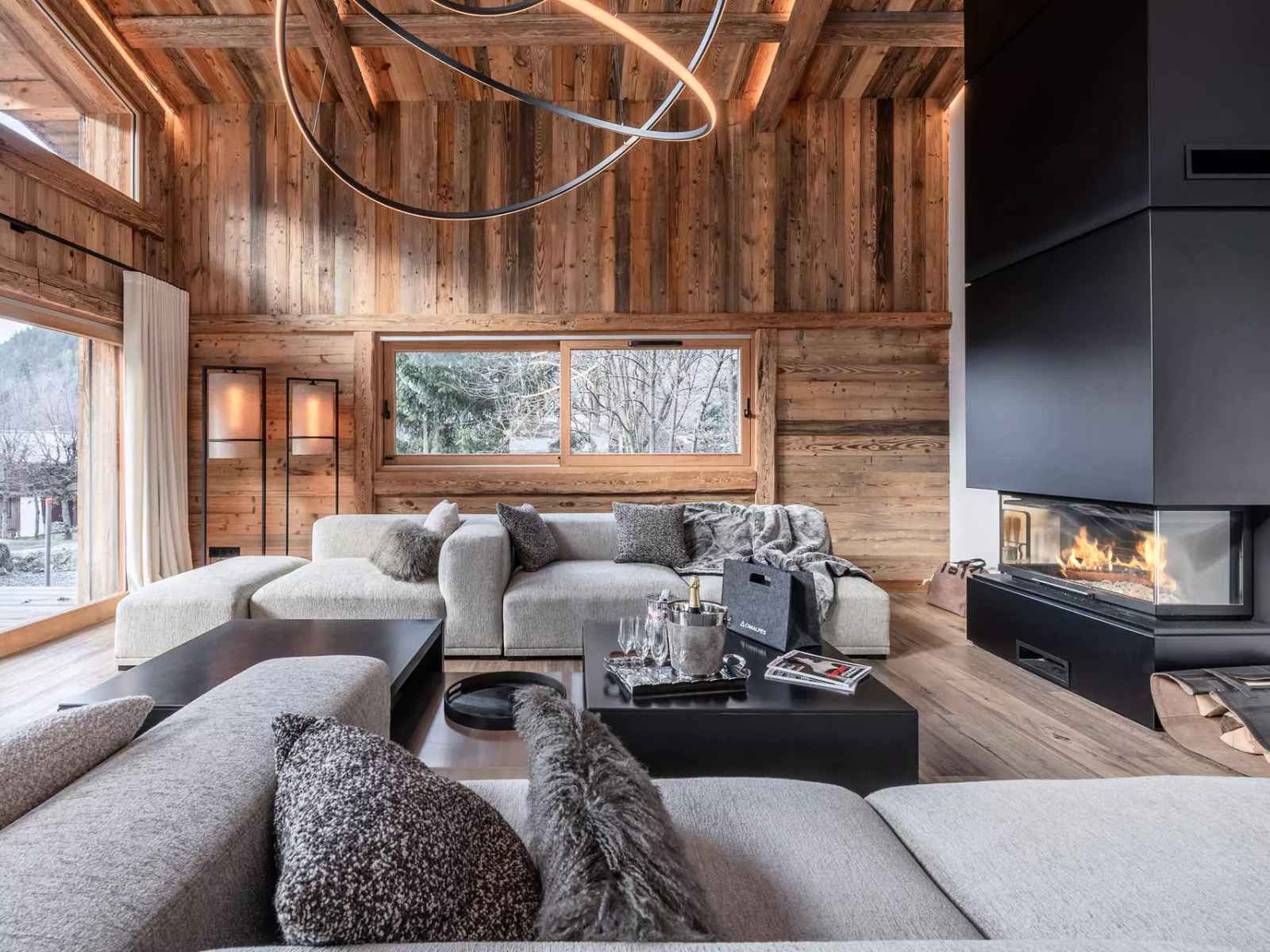 demi-chalet sur 3 niveaux de 134m², pour 6 personnes, situé dans le quartier résidentiel des praz à 2km du centre de chamonix.