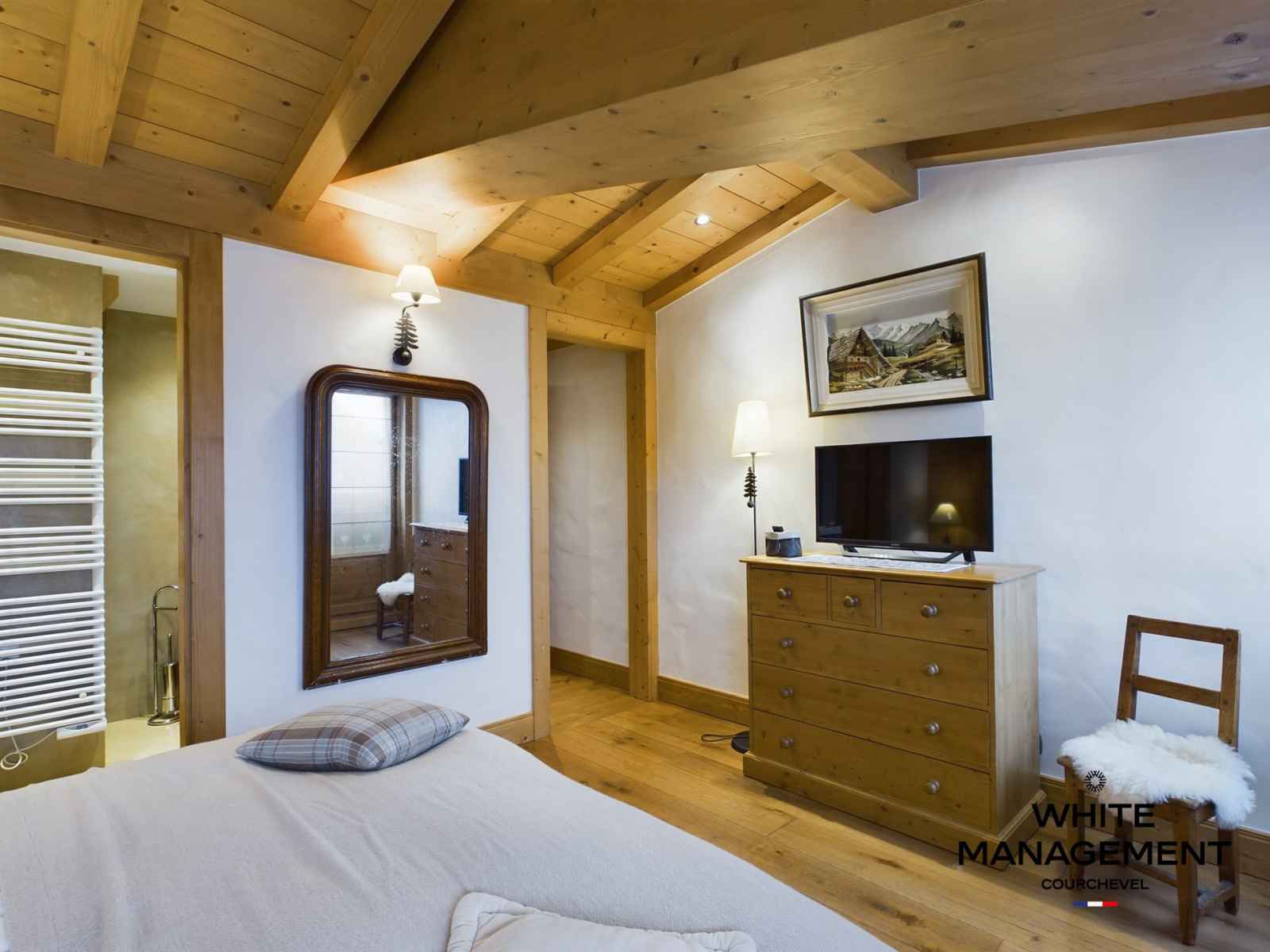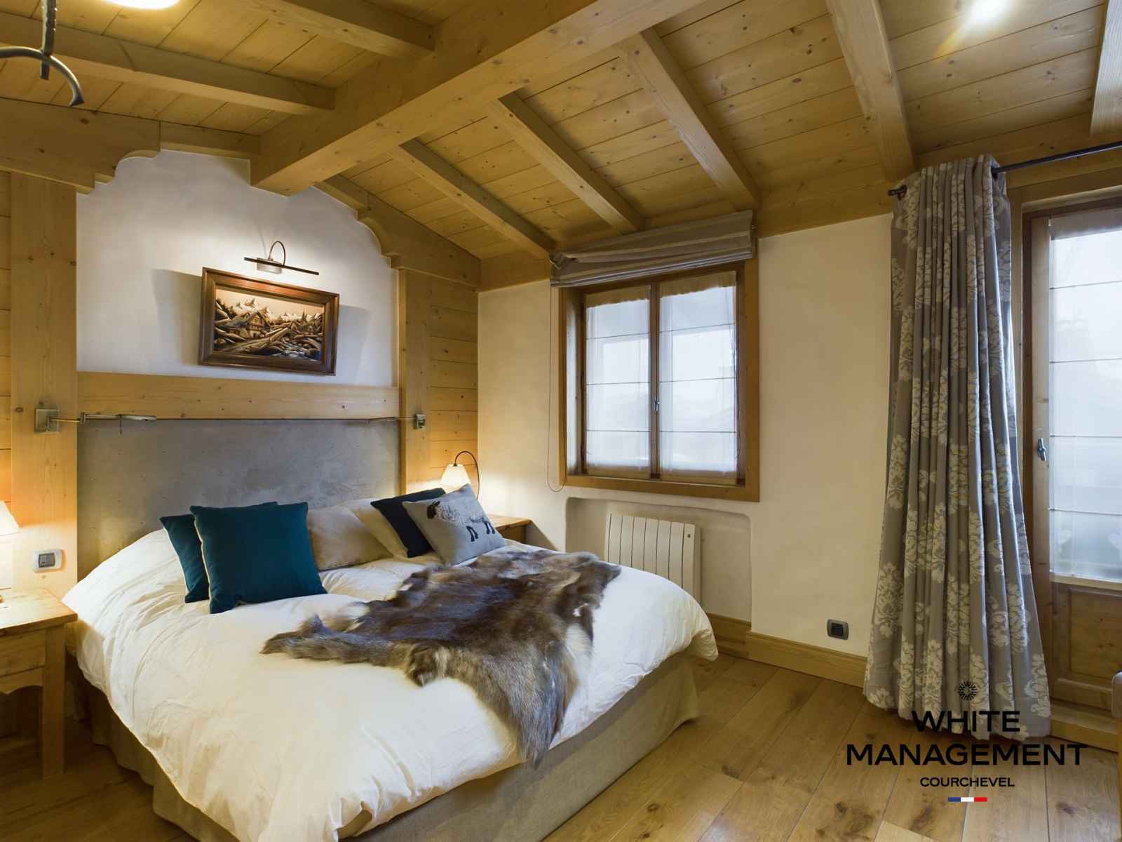 "De retour du restaurant d'à côté après une bonne fondue à la truffe, vous voilà de retour dans votre logement de vacances. Un feu de cheminée et une tisane plus tard, il est temps de recharger les batteries avant une nouvelle journée de ski au départ de Courchevel 1850."
