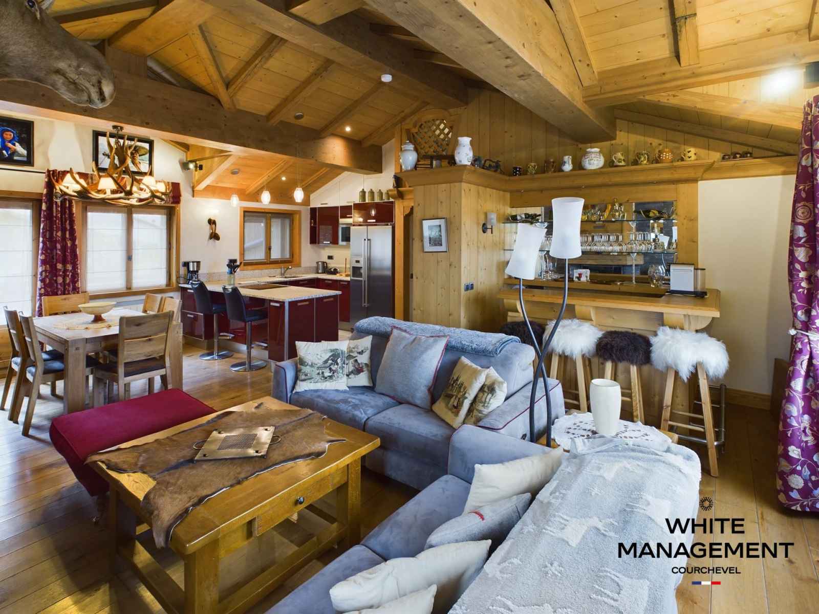 Himalayenne, vous apprécierez sa belle pièce à vivre avec cheminée à bois, grande cuisine ouverte, bar, espace repas et accès au balcon. Vous disposez également de 3 chambres en suite ( deux chambres doubles et une twin) avec WC, d’une buanderie et d’un skiroom. Des vacances clés en main et à proximité de toutes les commodités.