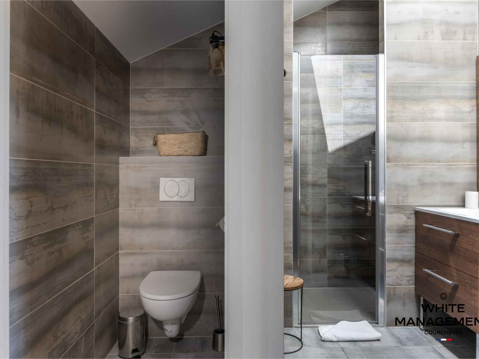 1 salle de bain privative avec douche à l'italienne, double vasque, WC séparé