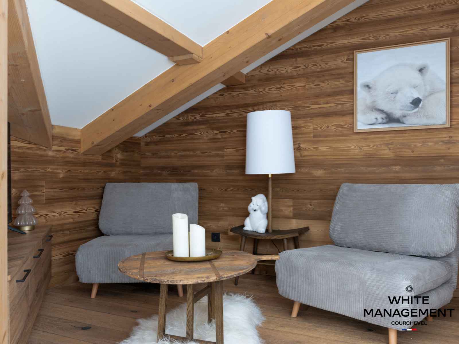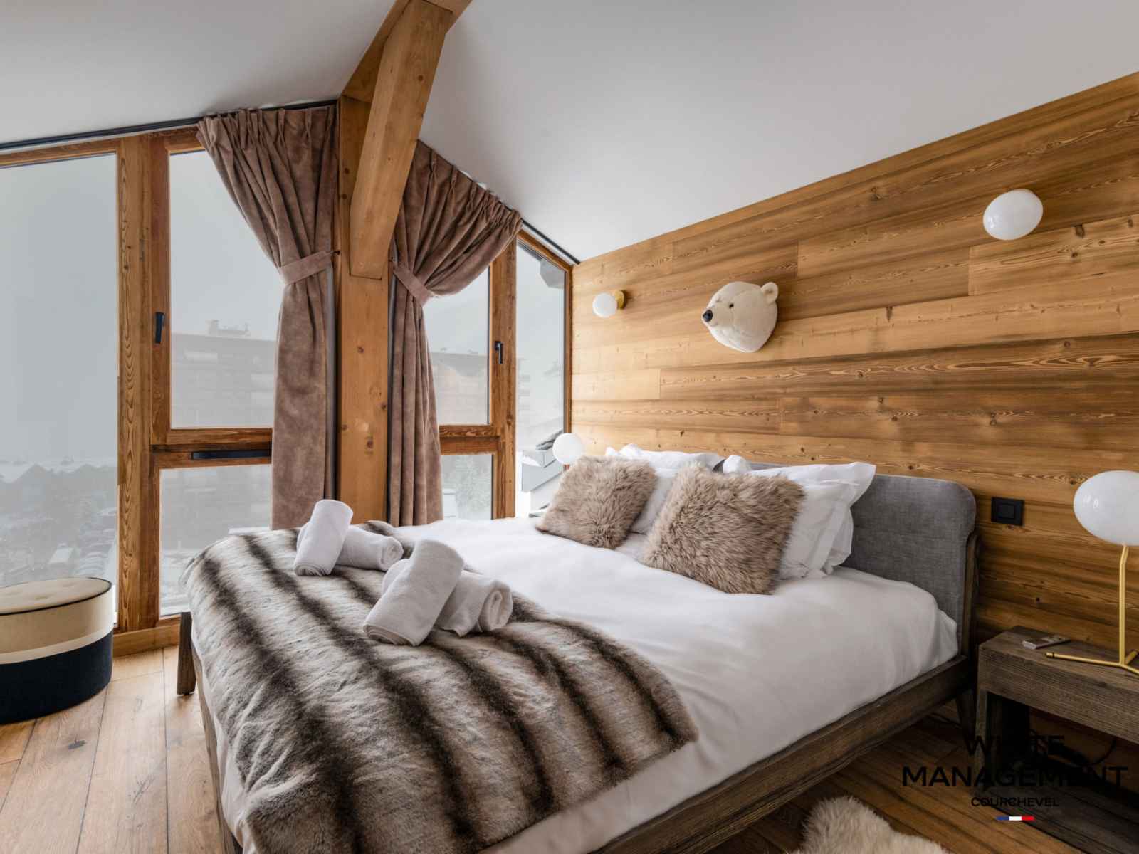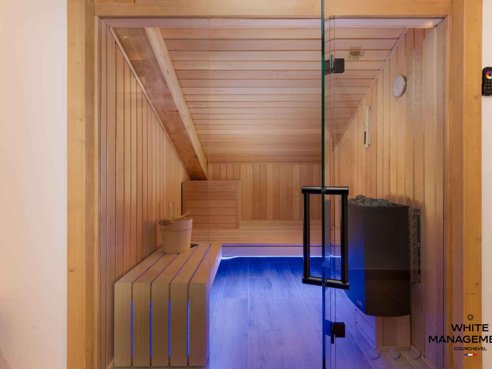 "Vous venez de passer une journée de rêve sur les pistes des 3 Vallées. Vous rentrez vous préparer pour la soirée au restaurant qui va suivre. Il n'est pas tard, juste le temps de profiter d'un instant suspendu dans le sauna privé du Grizzli, et d'admirer le coucher du soleil qui va clôturer cette journée magique. Pas de doute, vous êtes bien à Courchevel Moriond."