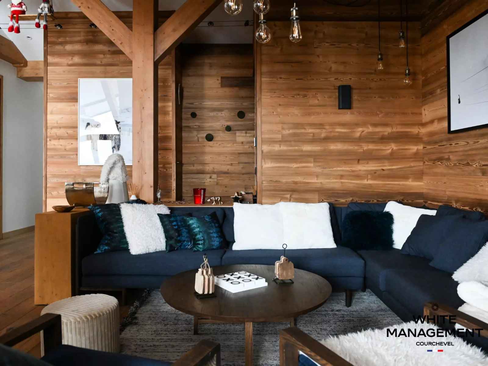 et une cuisine ouverte sur un bel espace repas offrant une superbe vue sur les sommets environnants. Ce penthouse décoré avec goût offre également 4 belles chambres, 4 salles de bains dont 2 en suite, et un grand sauna privatif.
