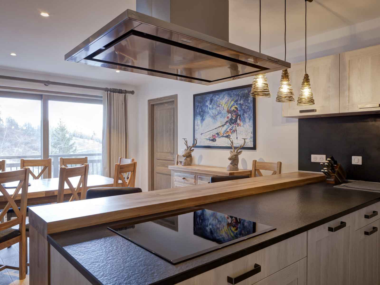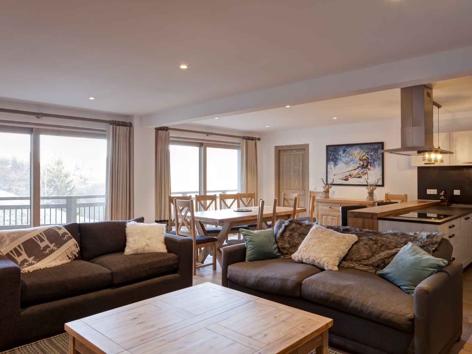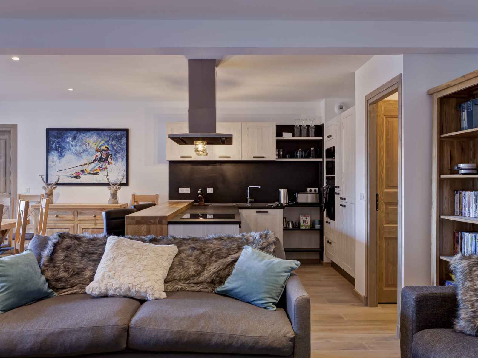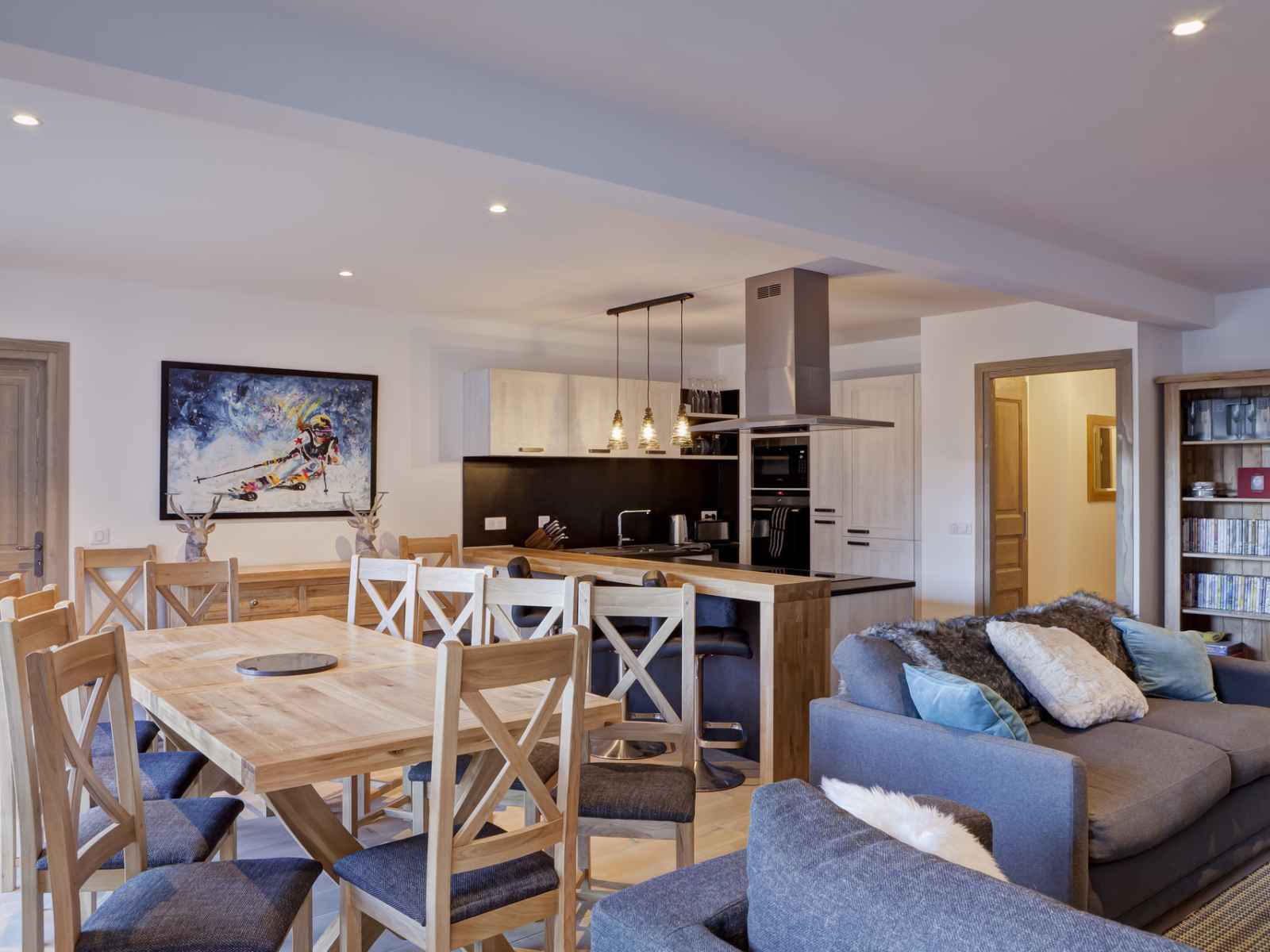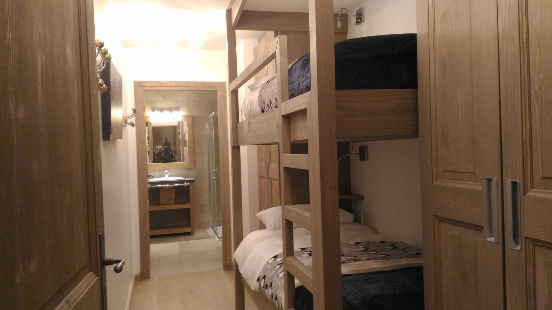 grande table, télévision écran plat et cheminée électrique. Cuisine équipée ouverte sur la pièce à vivre avec plaques à induction, four traditionnel électrique, micro-ondes, cafetière électrique à filtre, lave-vaisselle, hotte de cuisson et réfrigérateur avec freezer. COUCHAGES - Chambres en-suites : - Chambre 1 : 1 lit double King Size (180cm)ou 2 lits simples (2x90cm), rangements et spacieuse salle de bain avec toilettes attenante. - Chambre 2 : 1 lit double King Size (180cm) ou 2 lits simples, rangements, salle d'eau avec douche et toilettes attenante et accès au balcon. - Chambre 3 : 1 lit double King Size (180cm) ou 2 lits simples (2x90cm), salle d'eau avec douche et toielttes attenante et accès balcon. - Chambre 4 : 1 lit double Queen Size (160cm), rangements, salle de bain avec baignoire, douche et toilettes attenante et en angle, elle dispose d'une double exposition avec accès au balcon. - Coin montagne - Sans fenêtre : 1 ensemble de lits superposés (2 lits simples 2x90cm) avec grande salle d'eau avec douche et toilettes attenante. Le couchage en hauteur ne convient pas à un enfant de moins de 6 ans. - Salon : un canapé-lit convertible Queen Size pour 2 personnes (160x200 cm). Les salles de bains/d'eau attenantes incluent : 5 toilettes, 1 avec baignoire, 3 avec douches et 1 avec baignoire & douche. Casier à skis et sèche-chaussures privatifs dans le hall d'entrée de la résidence. 1 Garage avec lave-linge et 1 place de parking extérieure non couverte - Privée. Accès WiFi inclus. CONDITIONS DE LOCATION : Linge de lit inclus du 15/12 au 30/04 uniquement, sinon en supplément. Linge de toilette et ménage de fin de séjour non inclus et sur demande. Caution demandée à l'arrivée. Animaux non autorisés. Appartement non fumeur. cet appartement n'est pas equipé pour les pmr