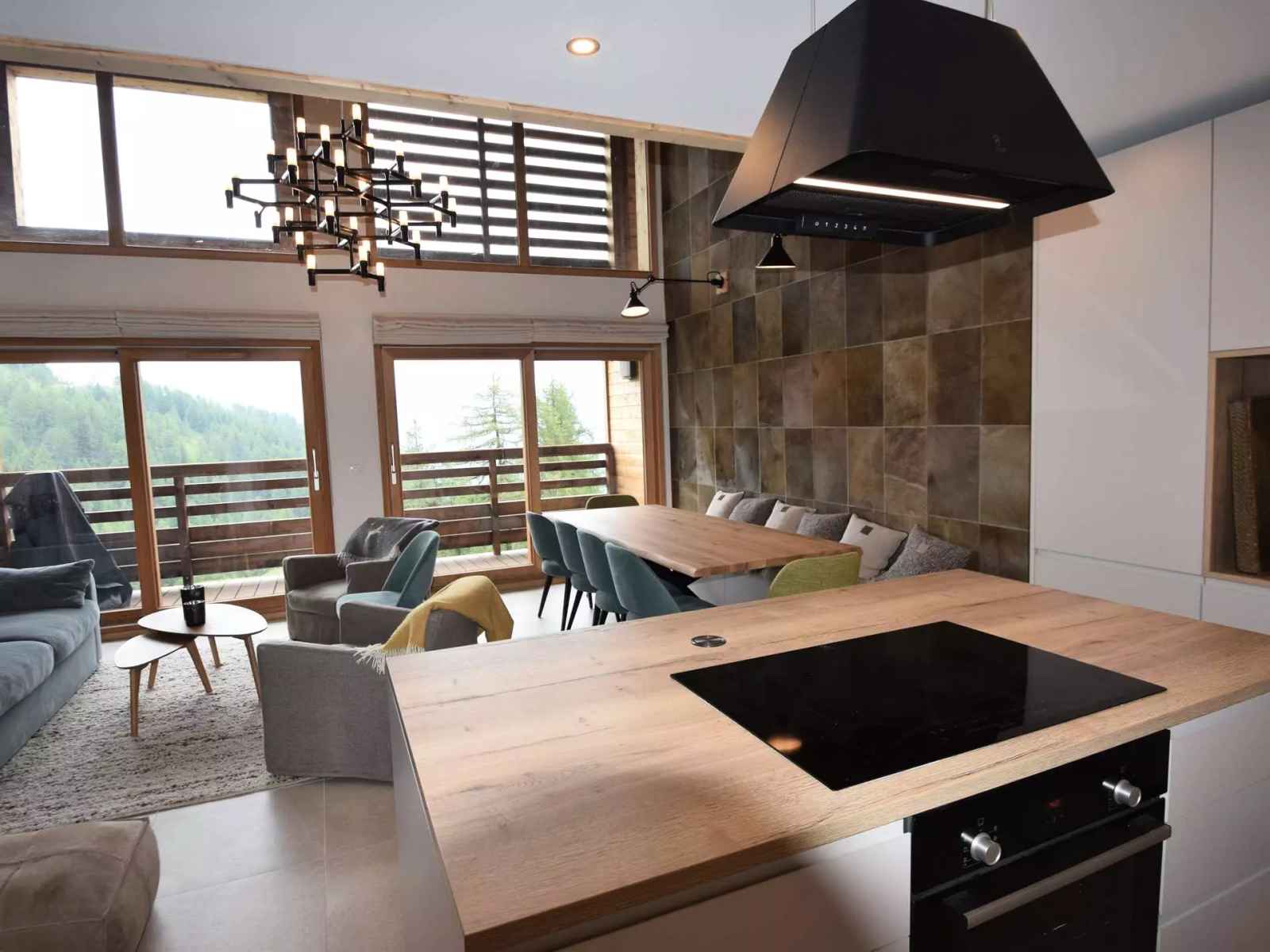 prestations haut de gamme pour ce duplex de 115m² pour 10 personnes, avec balcon vue mont-blanc, au 3ème étage - rdc : cuisine : 4 plaques induction, four traditionnel, micro-ondes, réfrigérateur + congélateur, lave-vaisselle. séjour : coin repas