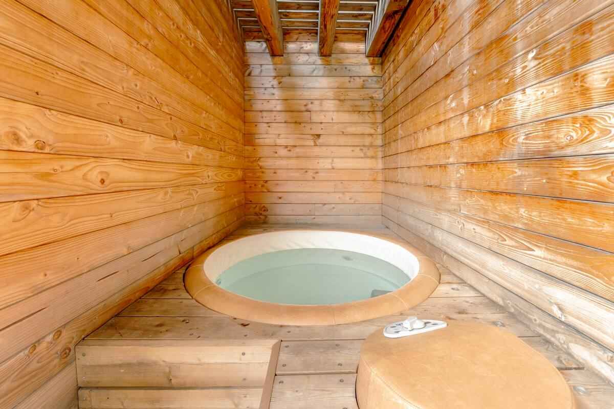 balcon avec jacuzzi, local à ski privatif, vtt bienvenus, il est interdit d'entrer les vélos dans le logement,