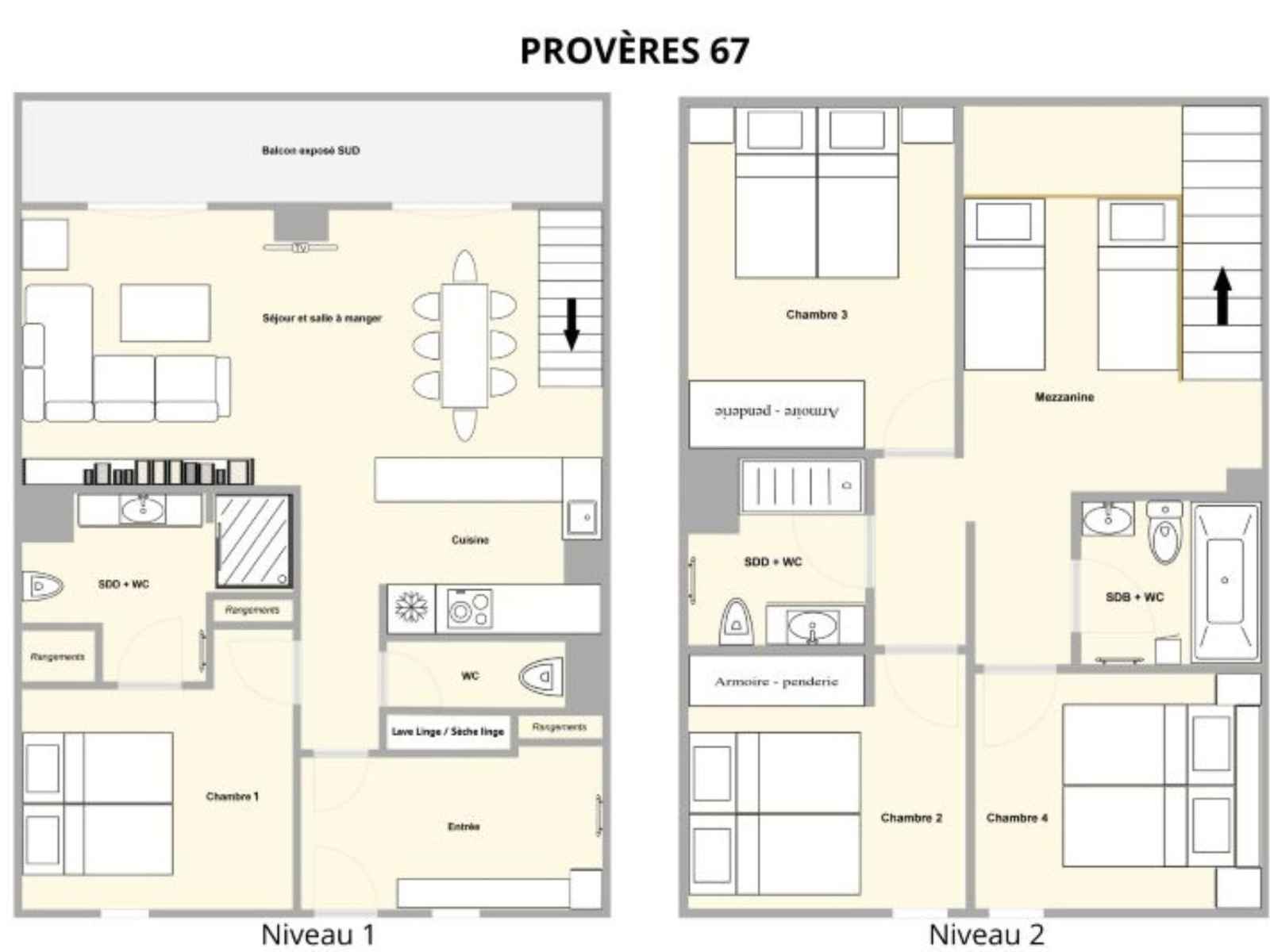 ouverte : 3 plaques à induction, four, frigo, lave-vaisselle, bouilloire électrique, grille-pain, cafetière à filtre, cafetière Nespresso, hotte Chambre 1 : 2 lits simples (80x190) - salle de douche en suite avec une douche italienne et toilettes Toilettes séparées Etage supérieur: Chambre 2 : 2 lits simples (80x200) Chambre 3 (avec 2 vélux) : 2 lits simples (80x200) Chambre 4 : 2 lits simples (80x200) Mezzanine ouverte sur le séjour : 1 ensemble de lits gigognes (80x200) Salle de bain avec toilettes et Salle de douche avec toilettes 1 machine à laver et 1 sèche-linge - Vue magnifique - accès au balcon avec transats Accès INTERNET PRIVE HAUT DEBIT GRATUIT (dépendante de l'opérateur, ne peut être garantie) NON FUMEURS ANIMAUX INTERDITS pour votre séjour mais 1 chien vient une semaine par an (en janvier) avec les propriétaires de l’appartement LES PLUS DE VOTRE SÉJOUR : lits faits à l'arrivée, serviettes de bain fournies, ménage de fin de séjour inclus, sèche chaussures dans l'entrée