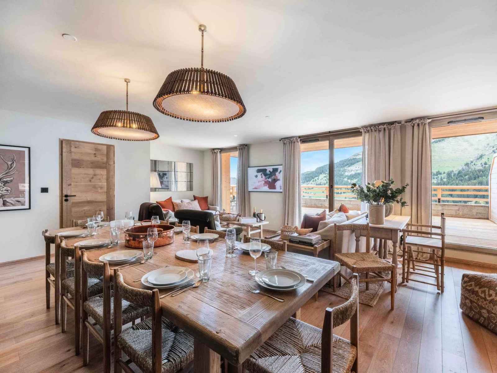 - Séjour spacieux, ouvert sur plusieurs coins détente ainsi que sur une grande terrasse offrant une vue imprenable sur les pistes et la dent du Burgin.