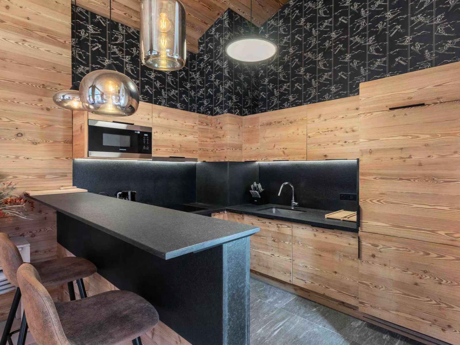 - Cuisine ouverte équipée : réfrigérateur/congélateur, lave-vaisselle, four, micro-onde, plaque induction avec hotte intégrée, lave-linge séchant, Nespresso, grille-pain, bouilloire, service à raclette / pierrade, service à fondue